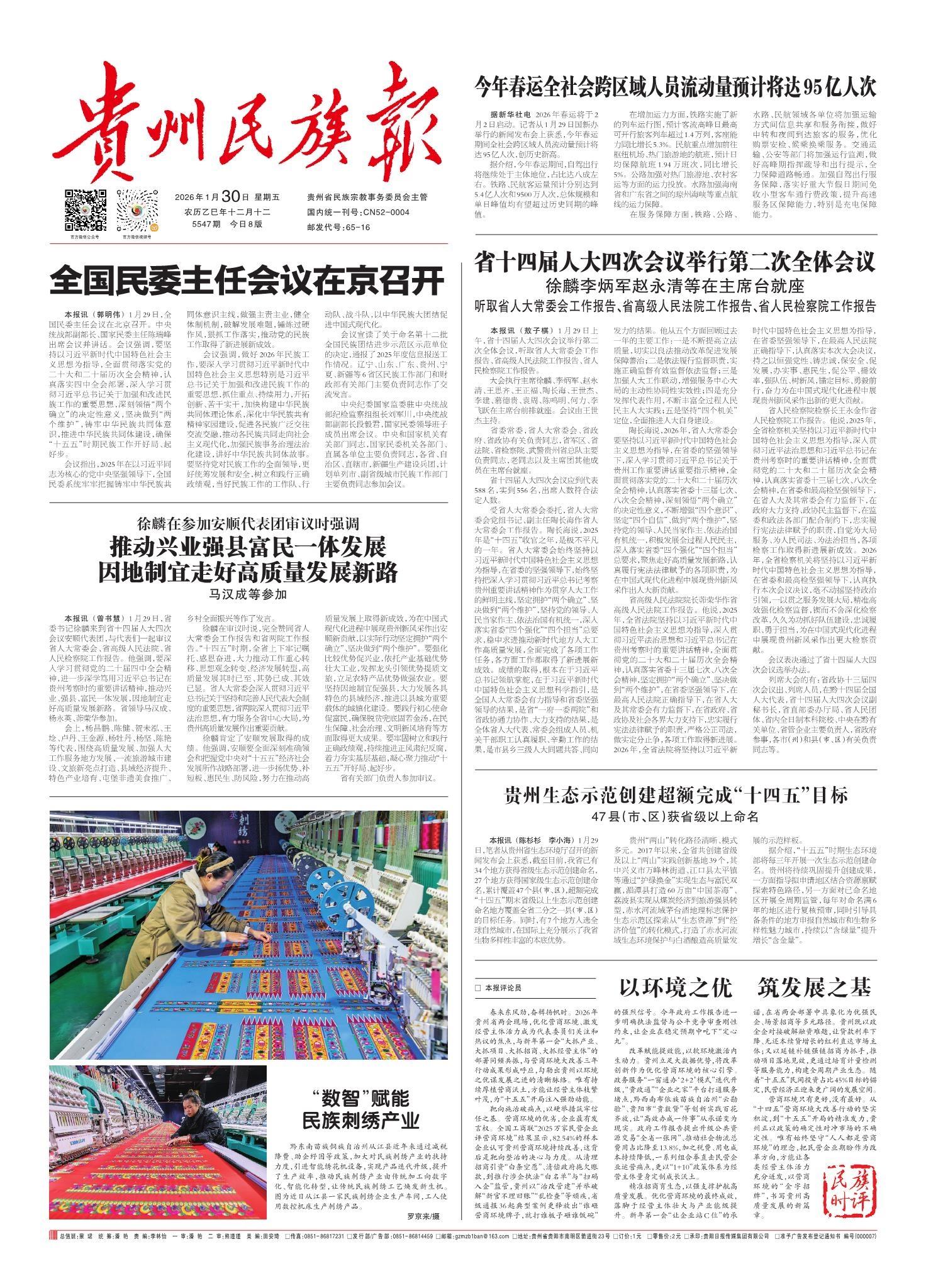 贵州“两会时间”开启, 代表委员向大会报到——携民声赴盛会 献良策谋发展