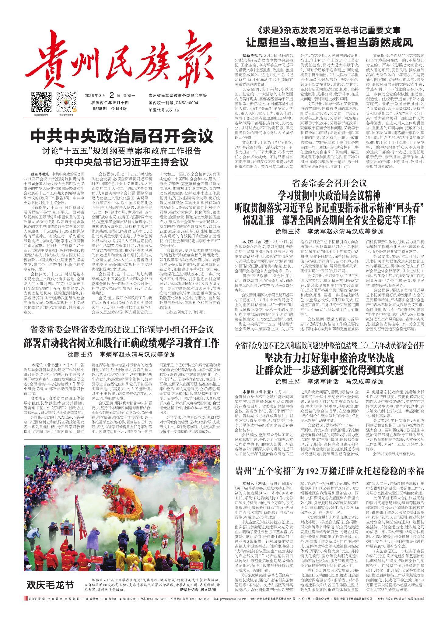 累计接待游客3269.24万人次 贵州全力保障游客安心乐享“黔味中国年”