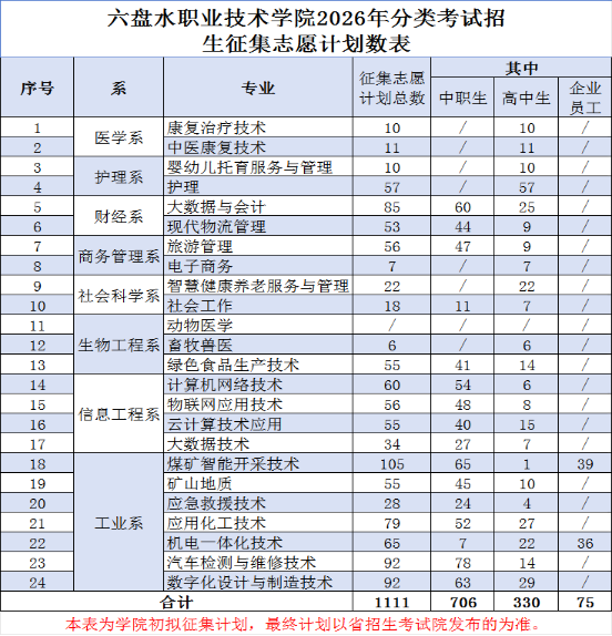 志愿征集︱填报代码1532-六盘水职业技术学院2026年分类考试招生志愿征集公告