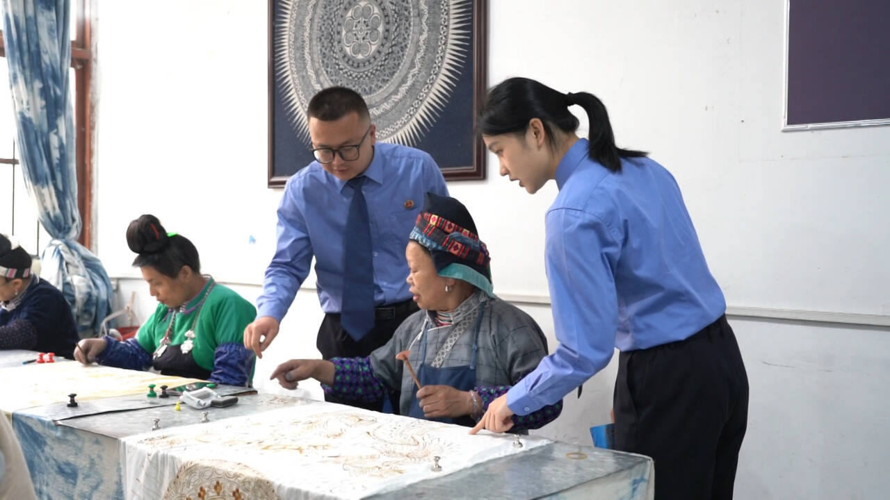 在位于丹寨县城的一家非遗蜡染工坊内,一场非遗保护宣传活动正在进行。来自县检察院工作人员现场通过具体案例,向非遗传承人普及文化安全与非遗知识产权保护知识,讲解非遗传承与文化安全的紧密联系,引导大家强化责任意识,守护好民族文化的根脉。