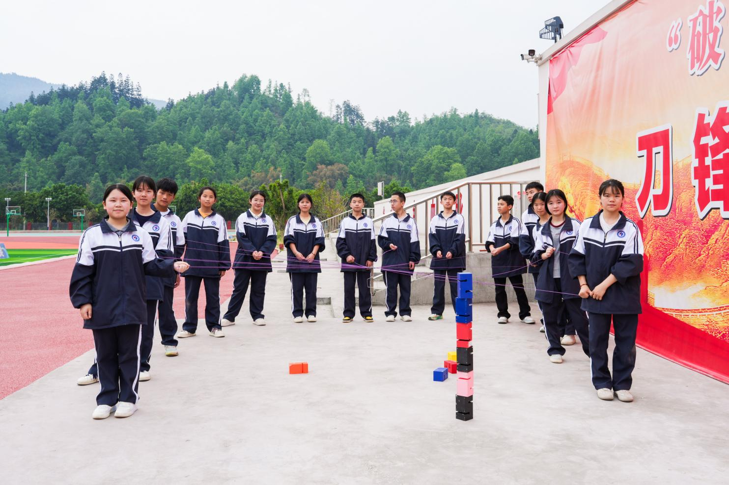 破冰环节,用互动问答迅速拉近距离,笑声此起彼伏。“合力建塔”时,各队反复调整策略,用绳索控制塔钩竖起高塔,击掌相庆。芬兰撞柱考验准度与计算——轮流投掷木棍,击倒标有数字的木柱,得分你追我赶,悬念留到最后一投。青春飞盘将气氛推向高潮,奔跑、传递、接盘,一记长传稳稳接住,全场欢呼。整场活动中,学生们汗水与呐喊交织,在真实协作中理解规则与信任,拉近了彼此间的距离,培养了协作意识。趣味竞技活动让校园充满欢笑,展现出青少年的蓬勃朝气与青春活力。