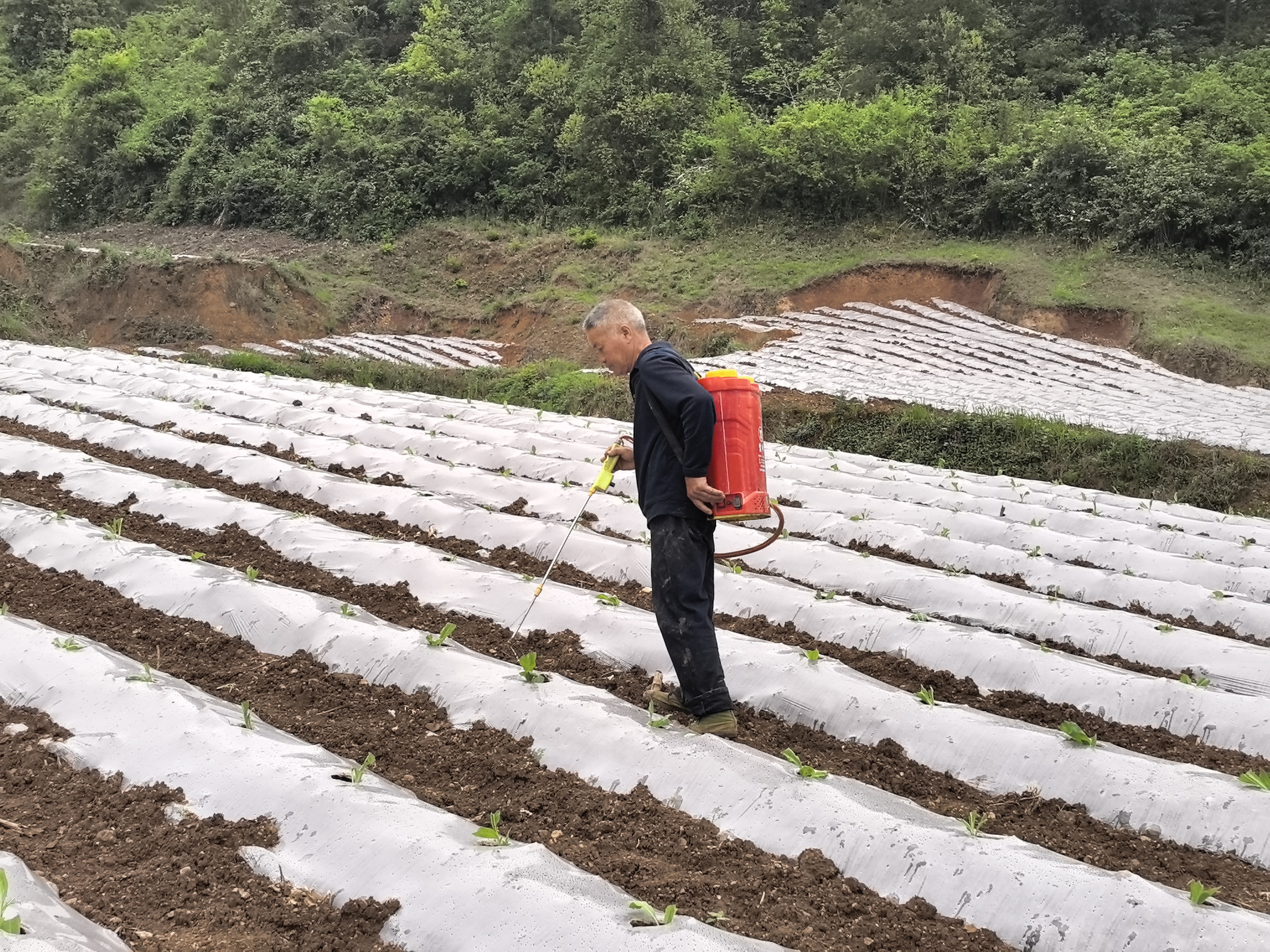 暮春时节,雨润山乡。施秉县双井镇白岩村千亩连片烤烟种植基地里,银膜如练、垄沟齐整,烟农们正抢抓墒情,打孔、投苗、浇水、覆土,一派忙碌景象。