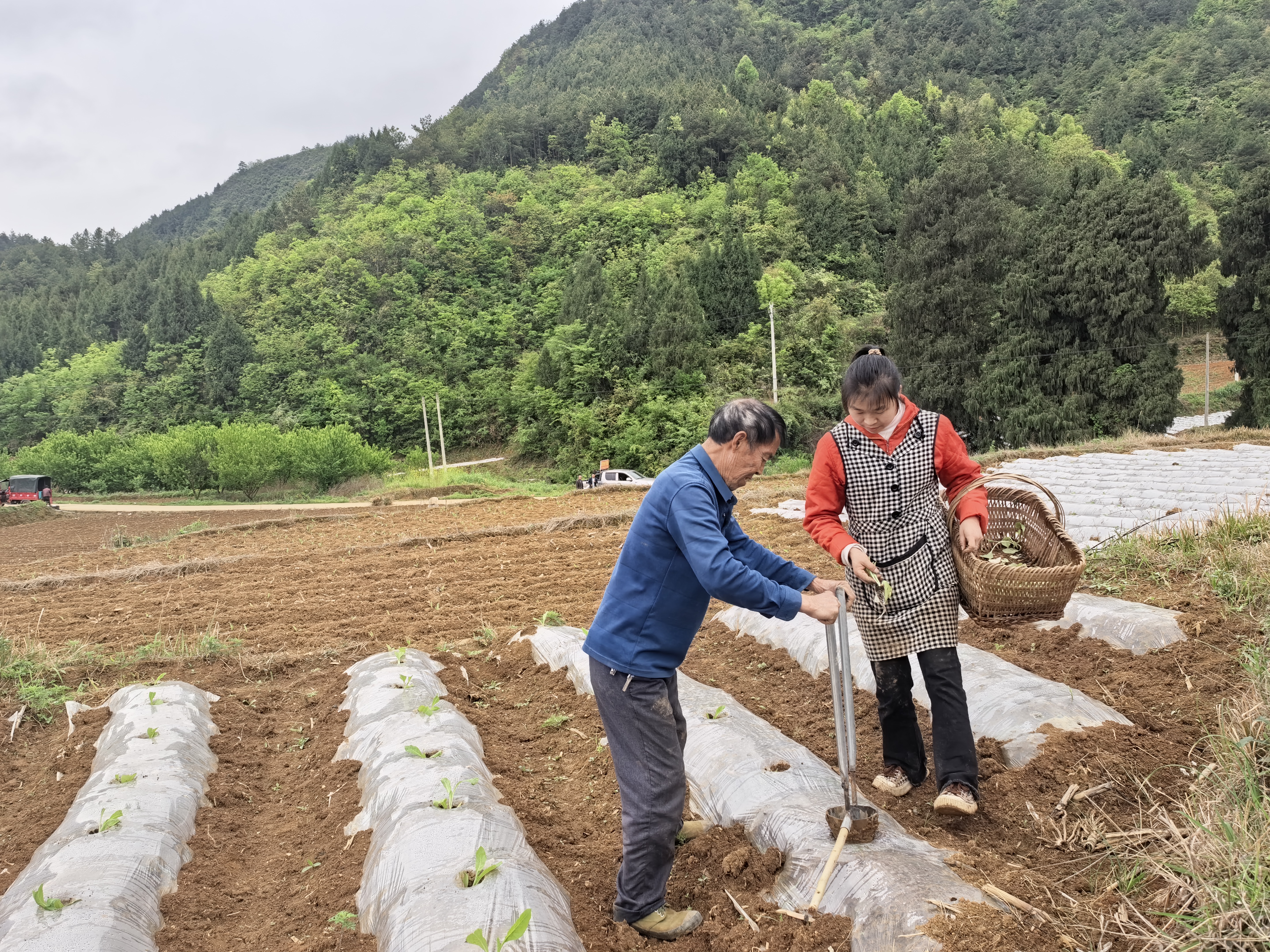 “株距50公分,穴位要深,水要浇透。”白岩村烟田里,双井镇烟叶站技术员李江手持卷尺,手把手示范标准化移栽。春耕期间,双井镇农服中心联合烟叶部门全程蹲点指导,技术人员分片包村、随叫随到。小型起垄机穿梭作业,土壤保育、水肥一体化等技术落地应用,科学化服务覆盖育苗、植保、烘烤等全环节。农技员李永久介绍:“烤烟是我们群众增收的重要支柱,今年种植面积同比增长15%,我们将重点在技术培训、农机调度、物资保障上发力,确保烟农种得下、管得好、收得上。”