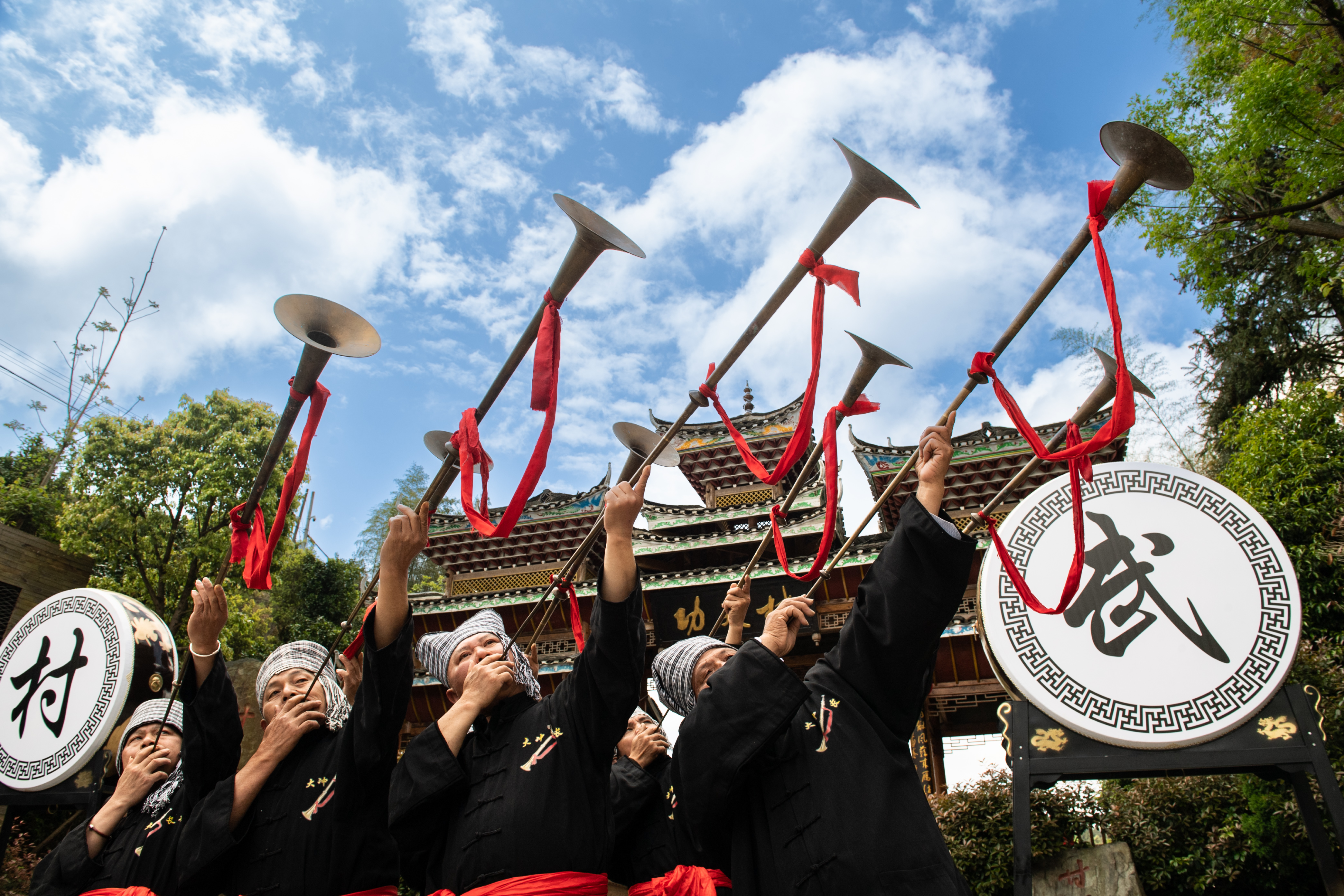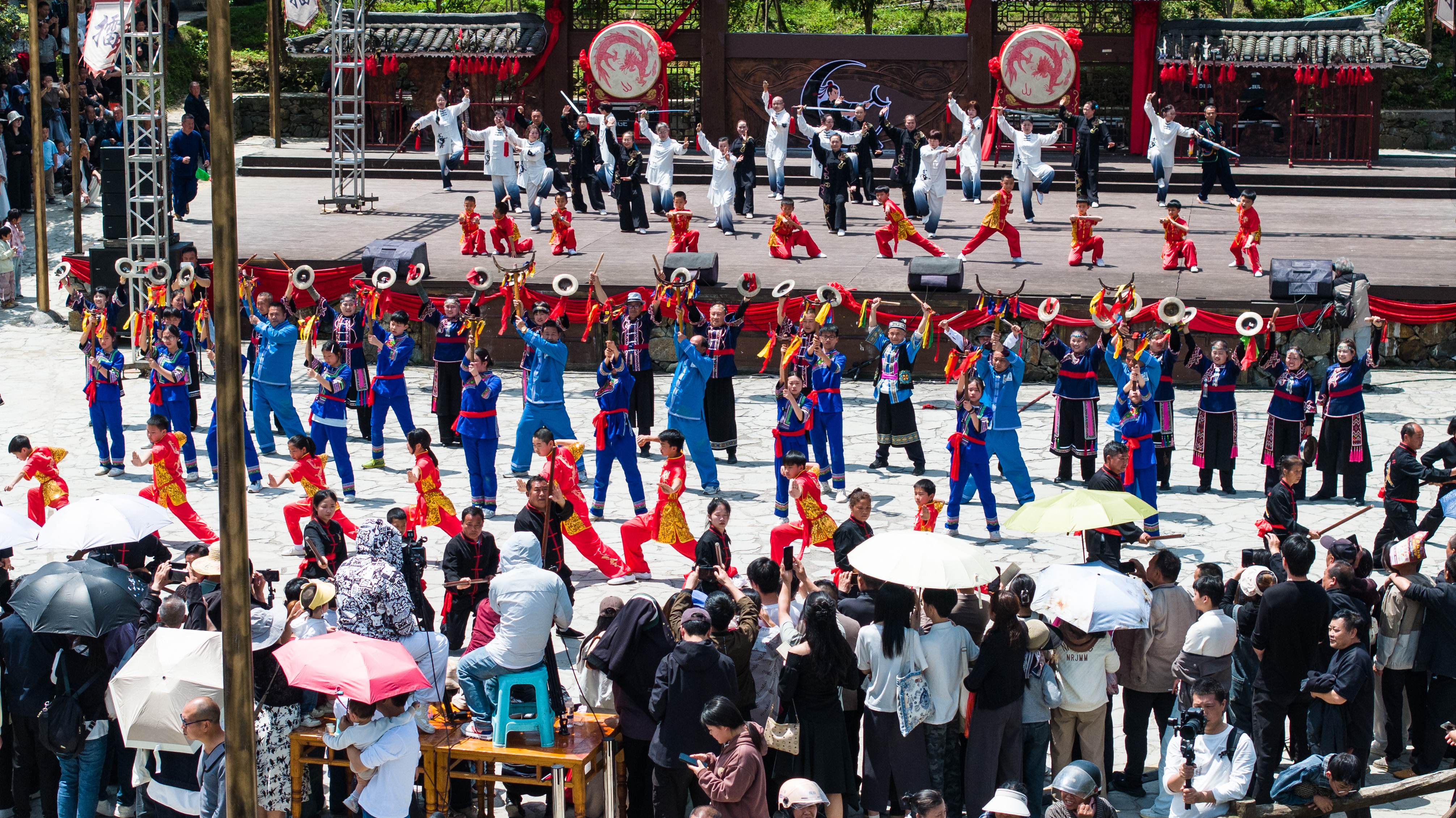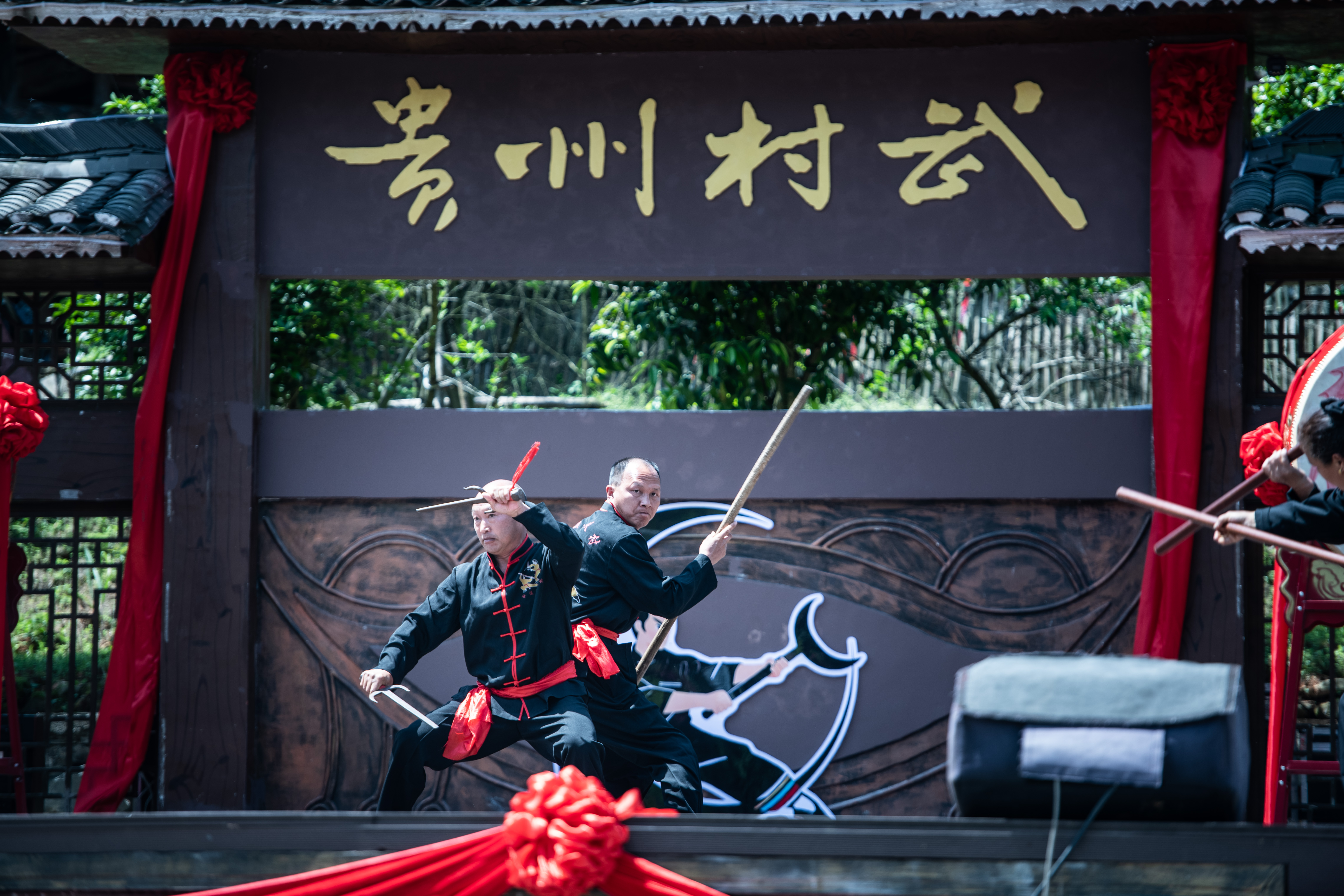 4月18日,贵州深山里的百年侗寨——天柱县渡马镇甘溪“功夫村”,擂鼓震天,“村武”开园。