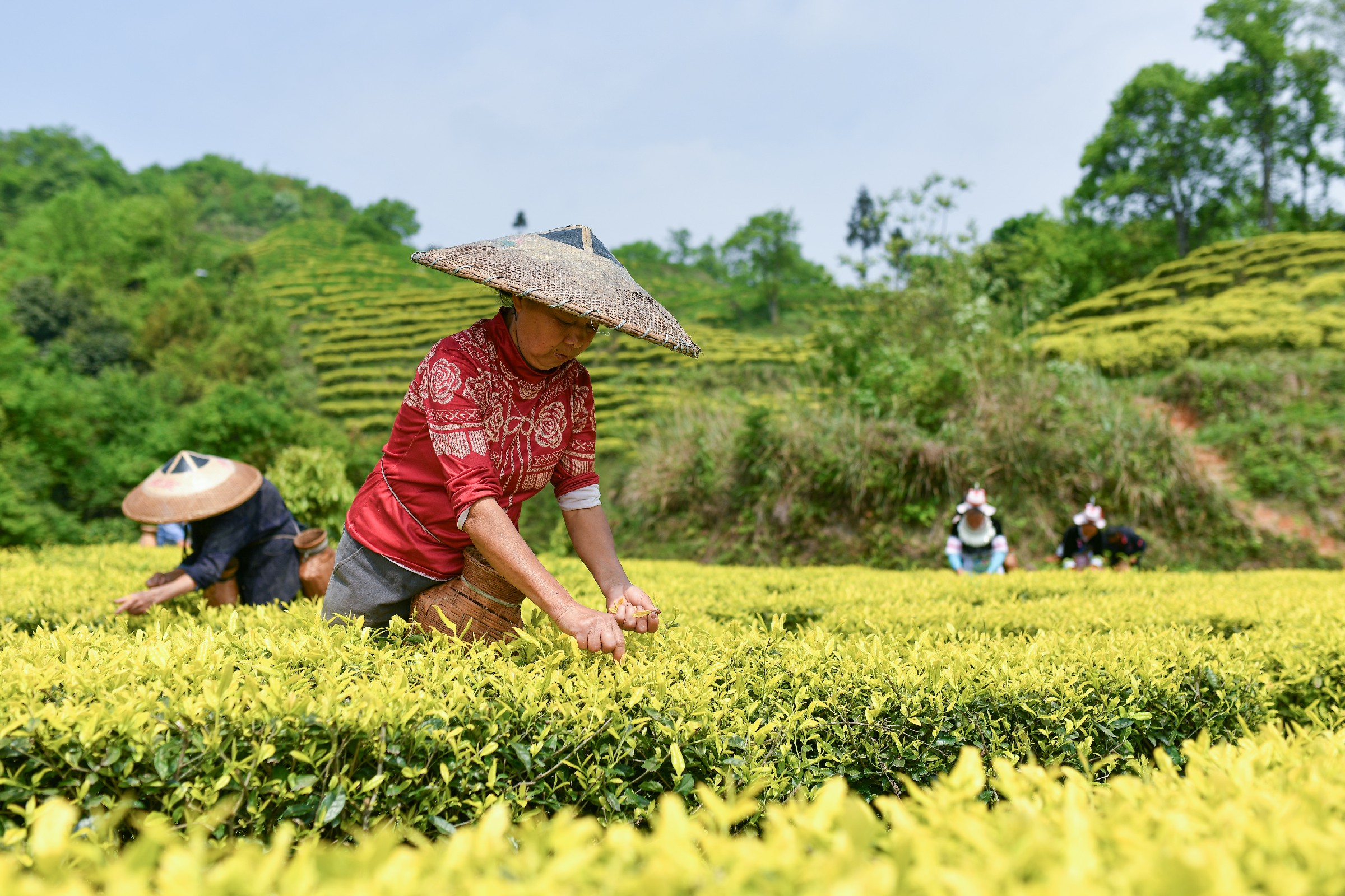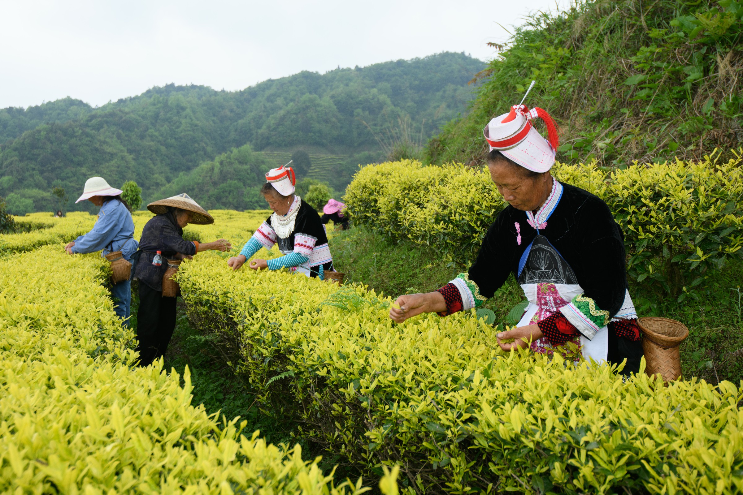 凭借低纬度、高海拔、多云雾的自然优势,这里培育出的黄金芽茶叶品质优良,成为当地特色茶产业名片。茶农们穿梭于茶垄间采摘新茶,忙碌身影与秀美茶山相映成趣,构成一幅生动的乡村农事画卷。
