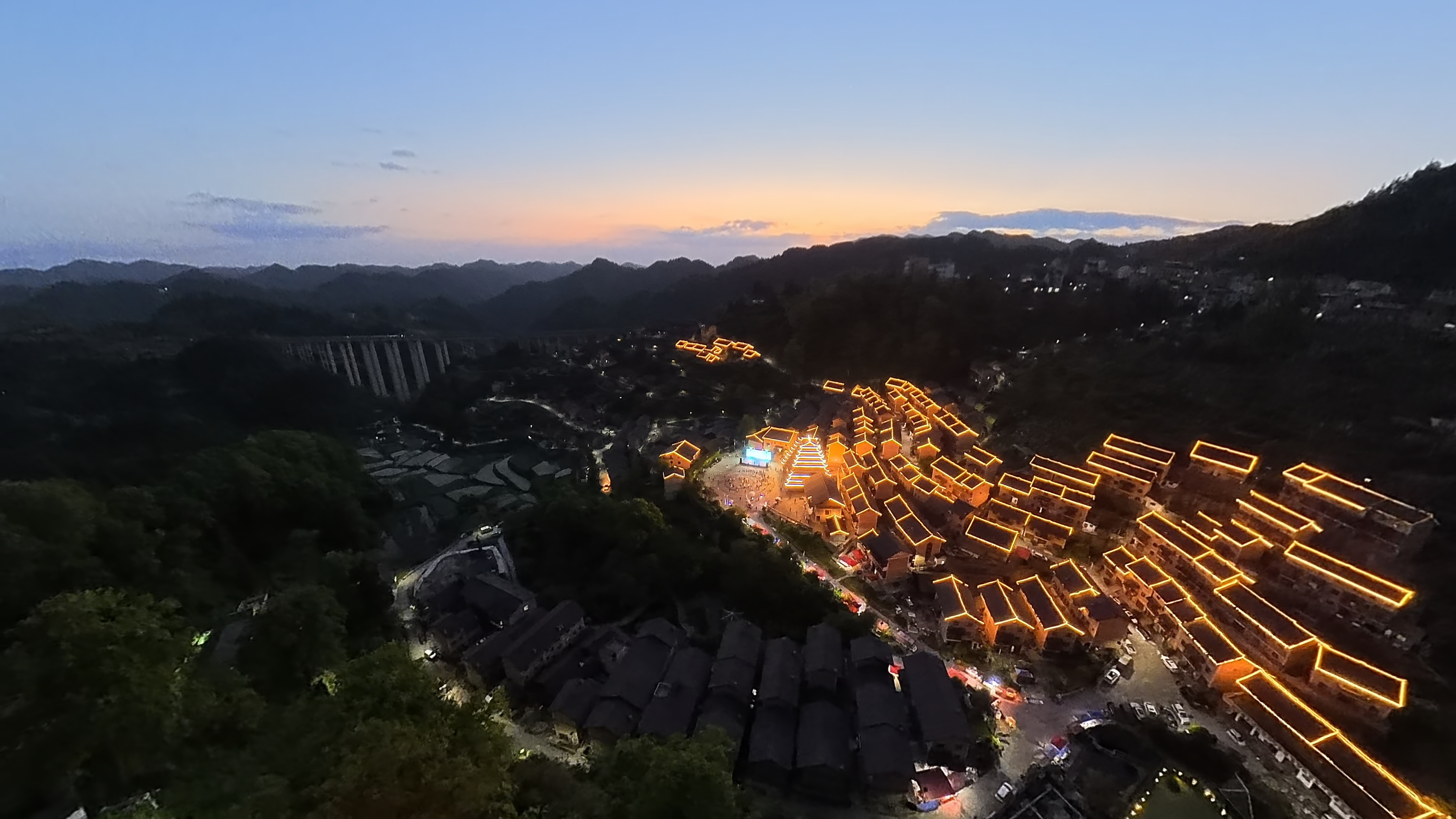 夜幕降临,熊熊篝火在芦笙堂燃起。各族宾客手拉手,围着篝火欢跳,木鼓声声、芦笙悠扬。