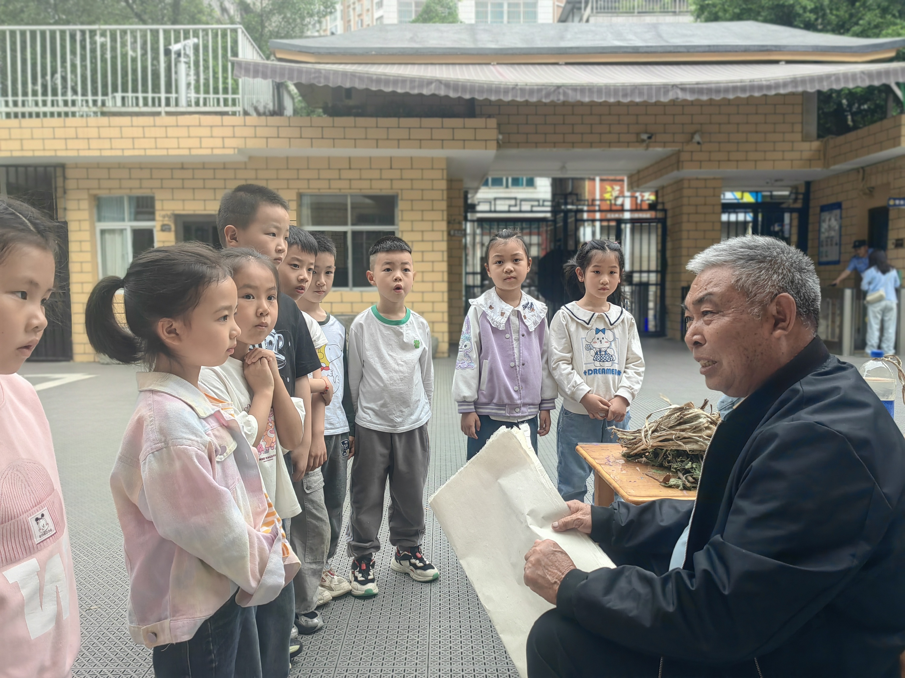 活动伊始,孩子们便带着满满的好奇与期待,围坐在刘世阳身边。大家小手高高举起,争相提问:“纸是怎么从树皮变来的?”“白棉纸和我们用的纸有什么不一样?”“造纸会用到什么神奇工具吗?”……面对童真的疑问,刘世阳耐心细致地解答,用生动易懂的语言讲述白棉纸的历史与价值,告诉孩子们白棉纸质地柔韧、经久耐用,是老祖宗留下的珍贵文化瑰宝。孩子们听得目不转睛,眼中闪烁着对传统技艺的向往。
