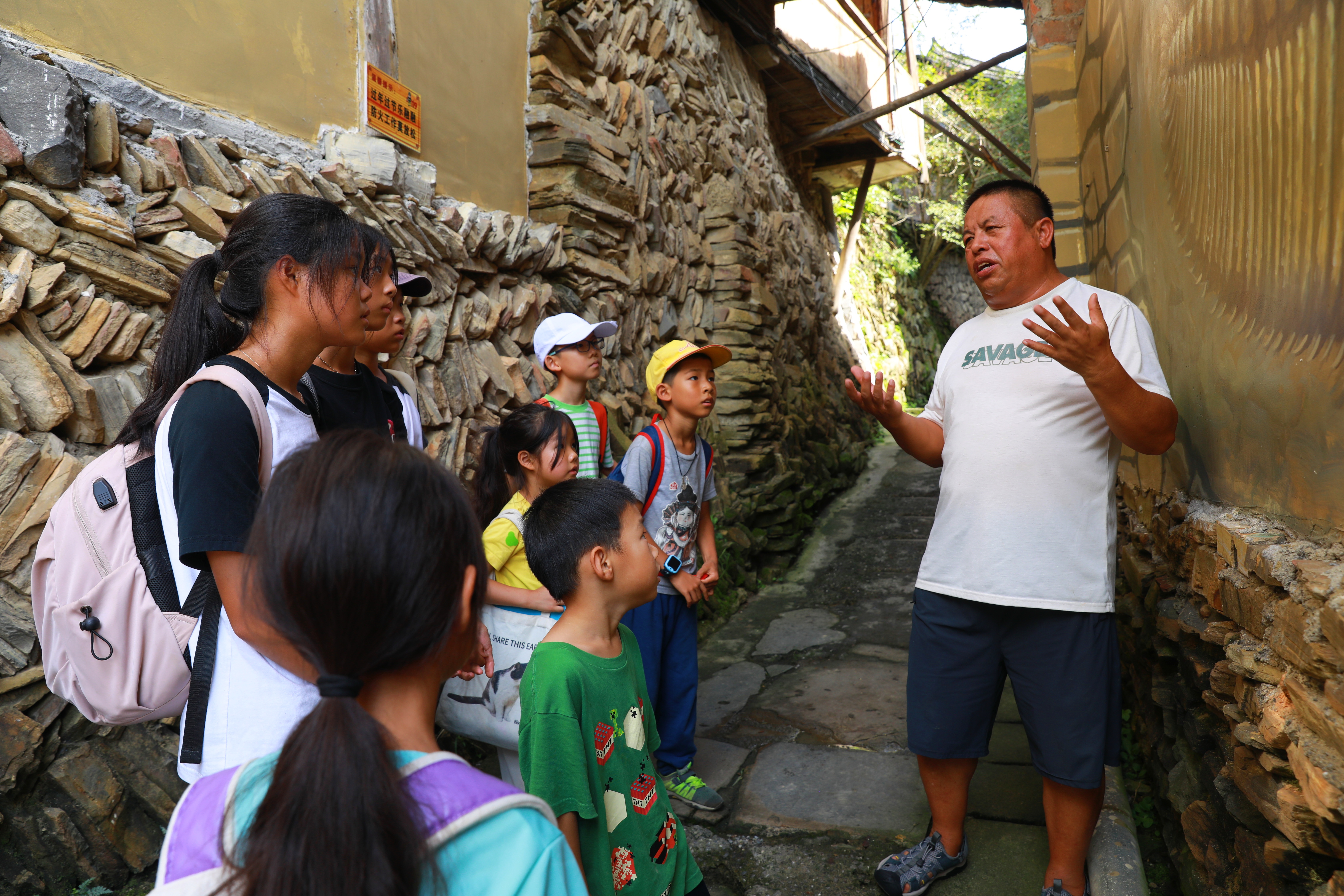 曾经因为交通闭塞,八郎苗寨藏在深山人未识。2012年,水泥路从县城通到村口,打开了八郎村的发展之路。依托便捷交通,当地以地质科普为核心、苗族文化为底蕴、生态资源为支撑,走出“地质科普+苗族文化+生态旅游+特色产业”融合发展新路。刘锋是八郎苗寨村民,也是苗岭国家地质公园革东园区专职管理员。2022年,他旅游管理专业的儿子刘星宇大学毕业后也毅然返乡,加入到金钉子科普工作中来,通过研学、采集体验等多种方式,带领游客感受古生物化石魅力,成为传统村落乡村振兴与文化传承的年轻生力军。