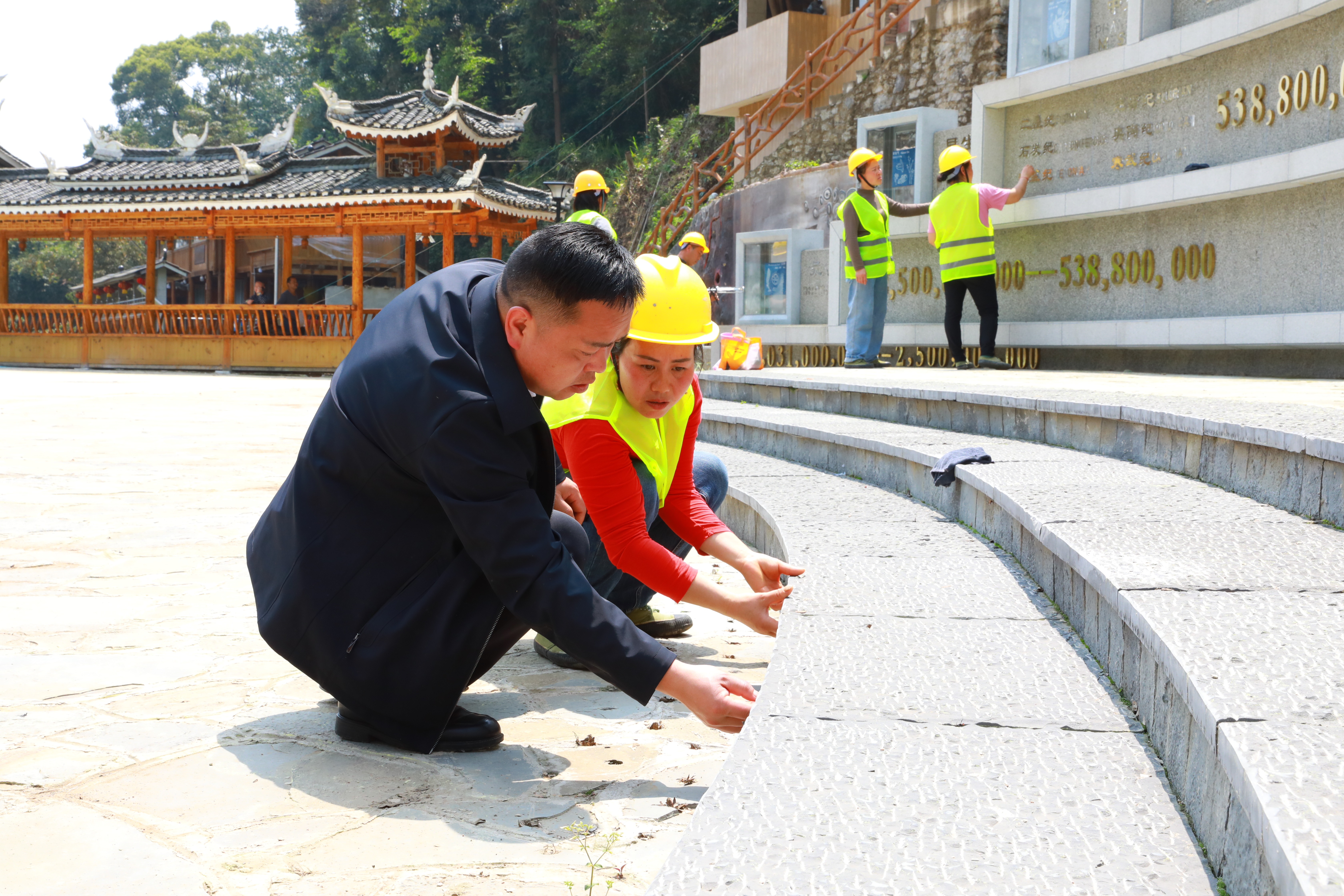 春日苗岭,绿意正浓。走进剑河县革东镇八郎村,这个深藏山间的苗寨静谧而充满生机。这里不仅是国家级传统村落,更因蕴藏着五亿多年前的寒武纪古生物化石,被誉为“化石上的苗寨”。眼下,金钉子陈列馆及广场正迎来升级改造,工作人员忙着测绘规划,为寨子增添新的吸引力。