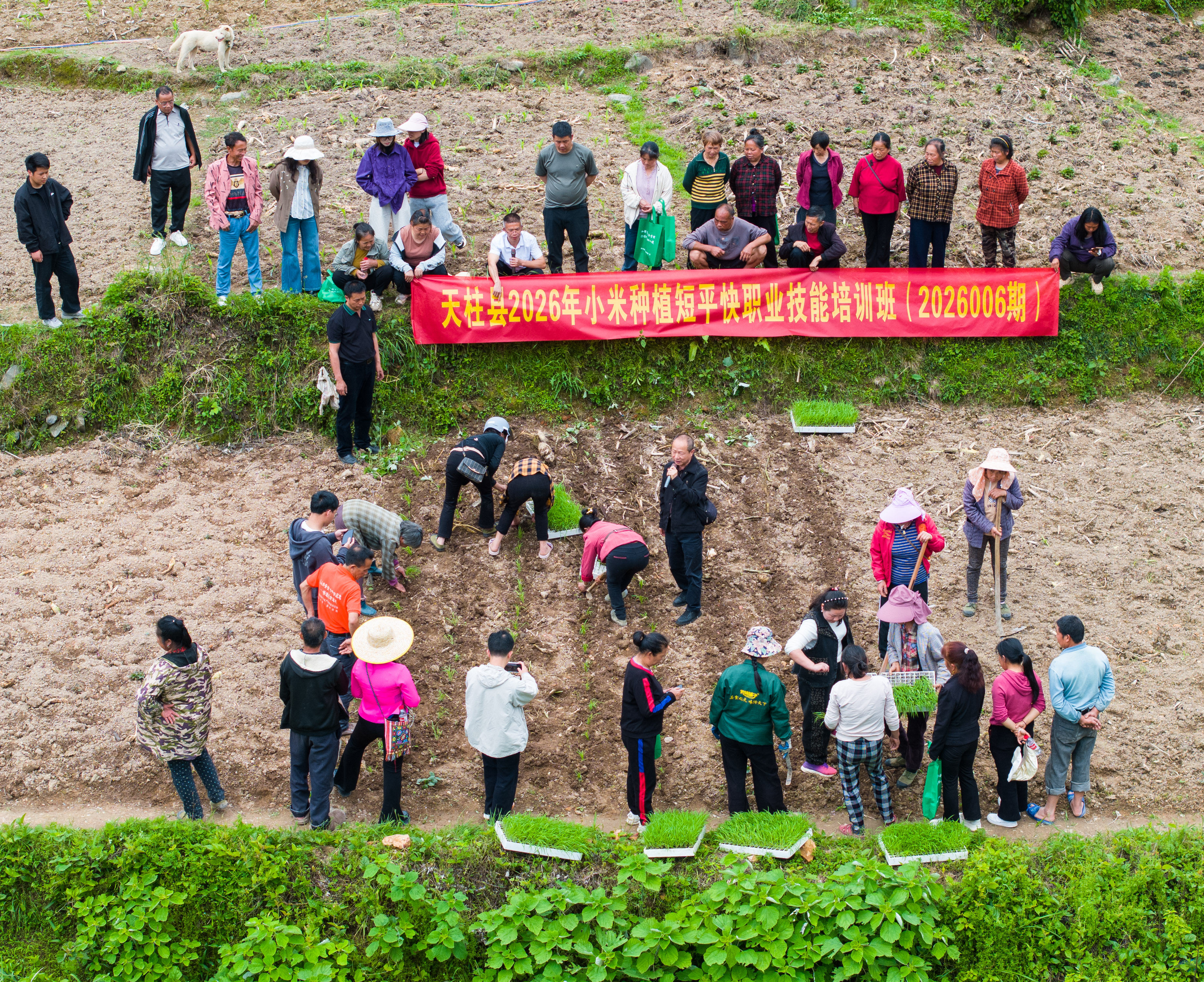 这天一大早,村支书江兴财蹲在田埂上举着手机:“老铁们看!这糯小米苗根粗杆壮,有机肥种的,熬粥起三层米油!”驻村第一书记龙声碧凑过来笑:“老江,去年咱们‘助农先锋队’把它卖好了,今年再冲一冲!”