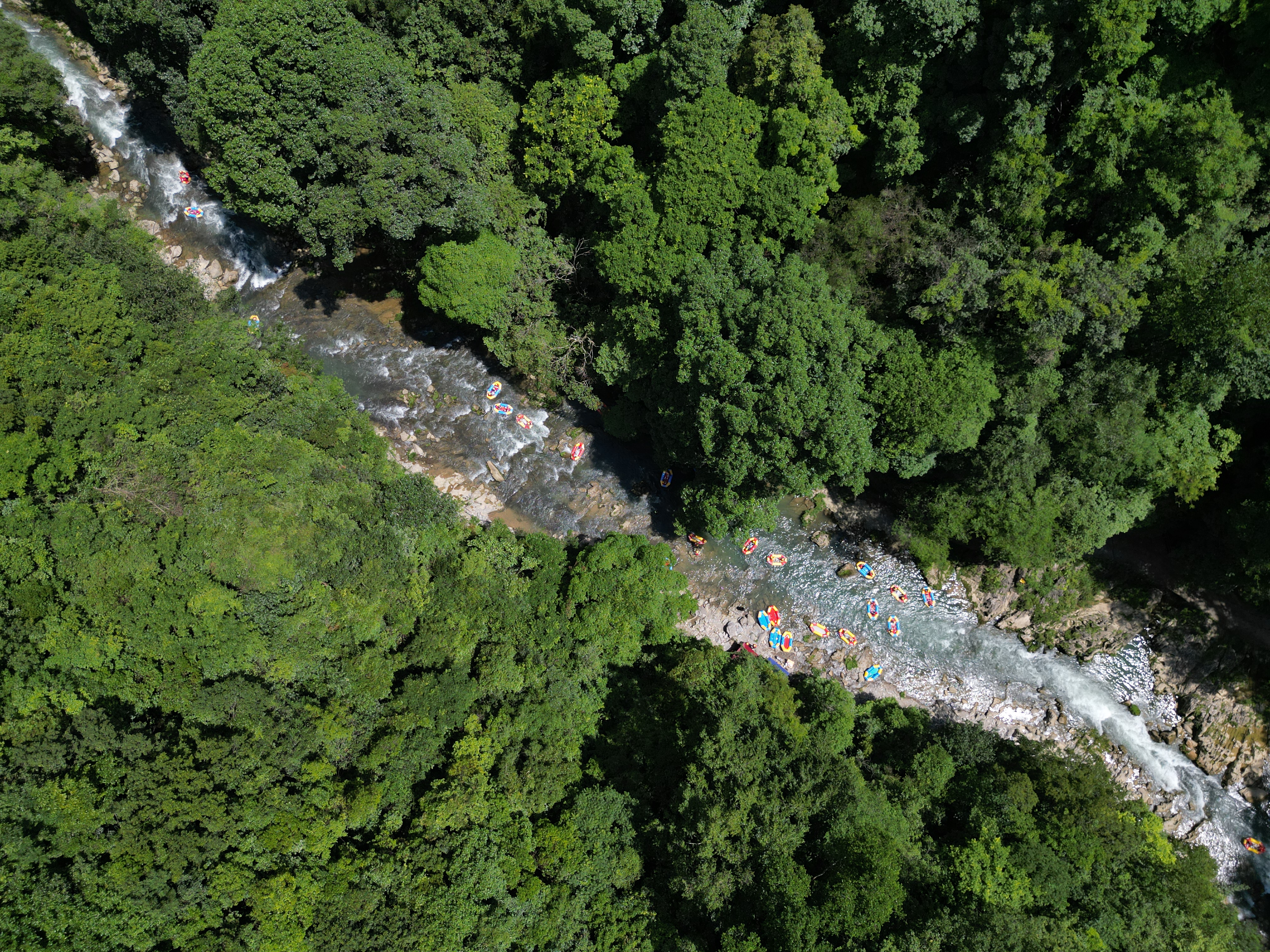 若说铁溪是温润的绿海,那高过河则是一场跌宕的峡谷奇遇。高过河位于镇远县北部,是一条在喀斯特地貌上切割出的深邃峡谷,两岸悬崖峭壁,怪石嶙峋,河水时而湍急奔涌,时而碧潭深幽。这里集峡谷、溶洞、暗河、飞瀑于一体,典型的喀斯特山地景观堪称地质博物馆。3公里的漂流河道落差达200余米,是全国知名的“会唱歌的峡谷”——激流冲浪时水花四溅的轰鸣、风过石缝的呜咽、两岸鸟啼蝉鸣,共同谱写出自然交响曲。徒步穿越高过河,你能触摸到亿万年石灰岩的肌理,仰望从绝壁飞泻而下的银练瀑布,在原始与野性中感受镇远山地的磅礴生命力。
