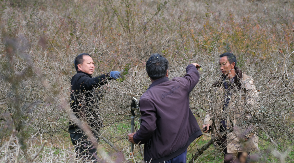 初冬时节,六盘水市水城区野钟乡的山坡上农户们农业专家指导下正有序开展修枝、施肥、清园等冬季管护工作,为来年的丰产打下坚实基础。自2015年起步,经过十年精心培育,这颗曾默默无闻的山野小果,已发展成为当地乡村振兴的支柱产业之一。