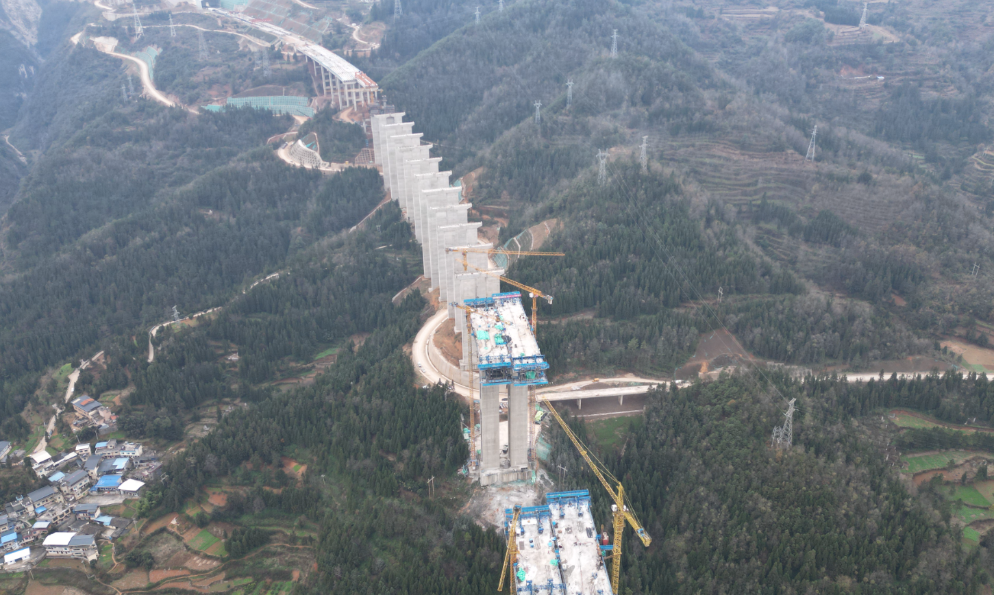 这座大桥需跨越省道、铁路及河流,地形复杂、技术难度大,是全线重点控制性工程。