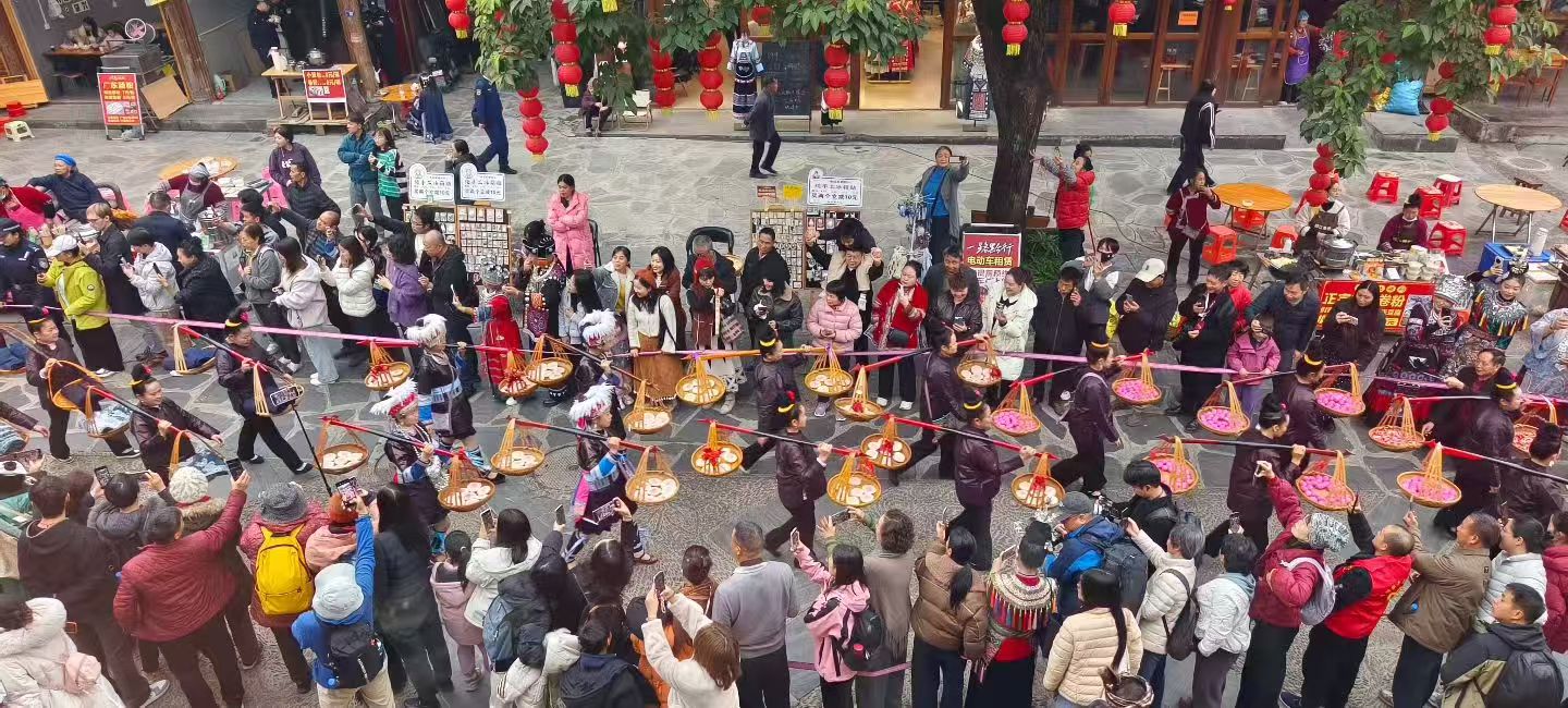 民俗巡游,展现独特风土人情。民族巡游,以方阵形式展示侗寨民俗、民族服饰、村歌、村舞、农特产品等内容,通过创新表达和多元融合,保留非遗精髓,彰显传统年味与地域特色。活动以沉浸式体验焕发生命力,各民族在巡游中,触摸到侗年文化的温度、多彩与厚重,其当代价值、适应性与包容性,推动非遗走进现代生活,焕发新时代光彩。