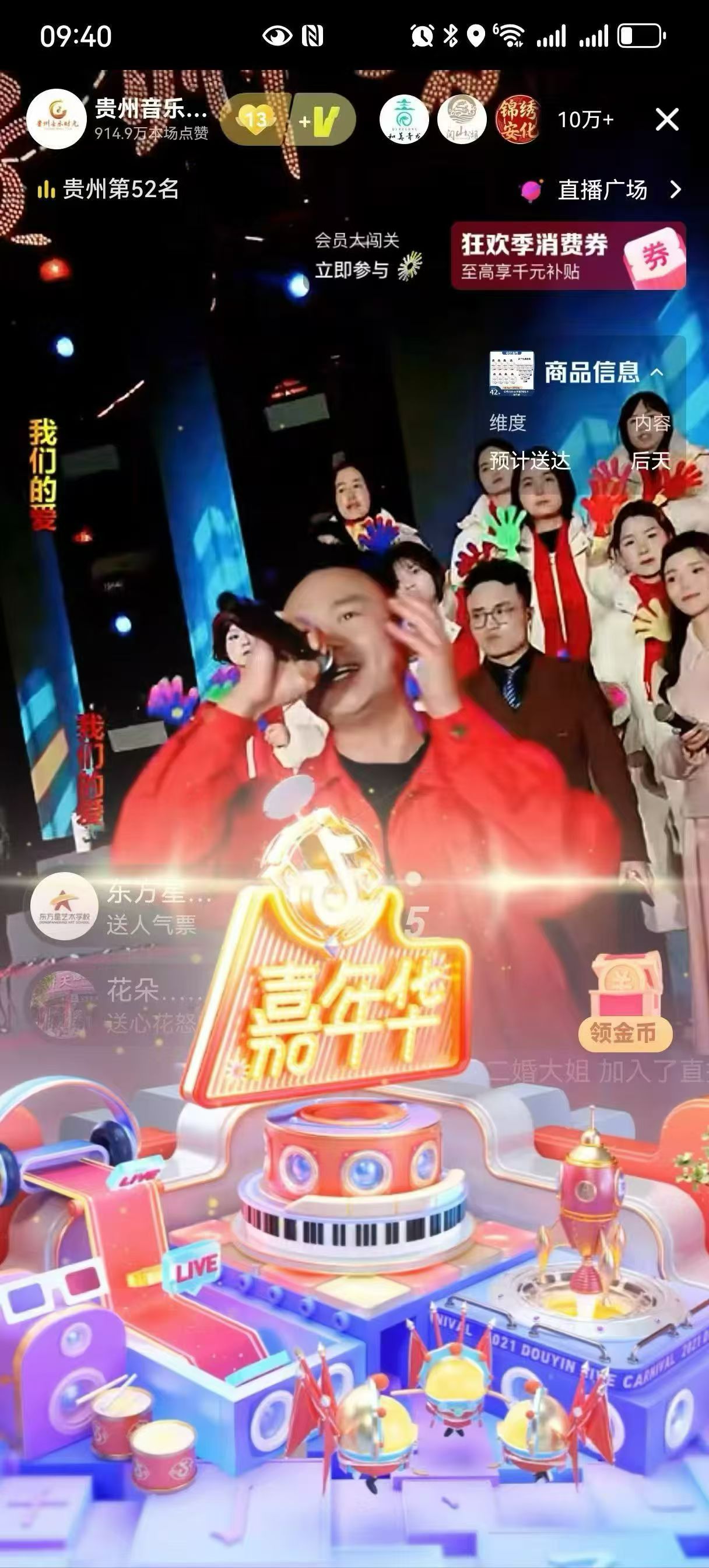 截至12月29日,“贵州音乐时光”已累计开展赛事直播288场,创造了惊人的传播数据:直播曝光量1.6亿,线下累计曝光65万人次,相关话题总曝光量突破11.1亿,成功汇聚了1700余人次的省内外音乐爱好者登台献艺。