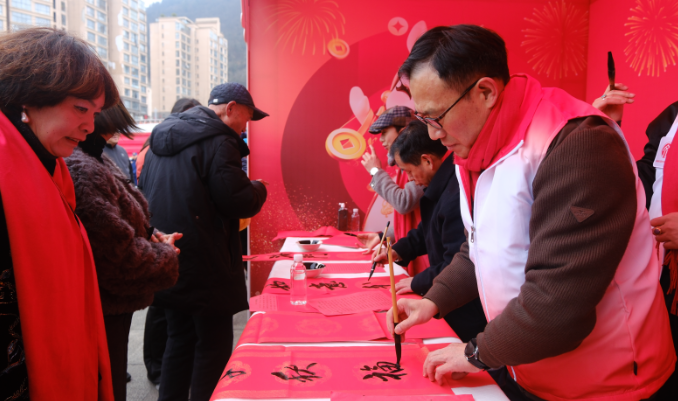 现场犹如一个文明新风主题游园会。画师执笔教学,观众亲手体验绘画魅力;书法志愿者挥毫送“福”;非遗技艺展台前,剪纸、草编吸引层层围观;移风易俗知识被设计成趣味转盘游戏,笑声中深化认知;免费全家福拍摄、流动图书车、义诊服务等人气点位,让艺术化为可触摸的温情。