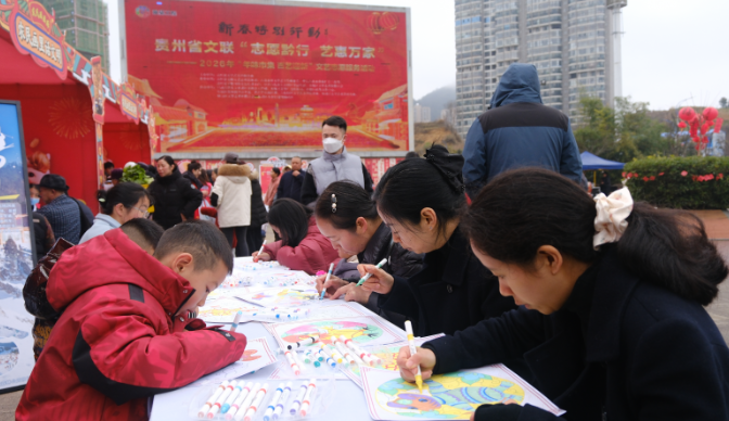 1月20日,“农民画里话文明”巡展在水城区政务服务中心广场火热启幕。未来40天,百幅色彩浓烈、乡土气息浓郁的农民画佳作,将走出传统展厅,走进景区、广场与酒店,铺开一幅“可看、可玩、可感”的文明生活画卷。