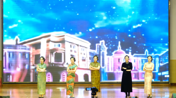 最引人注目的是行政组教师带来的《百年风华年代时装秀》,从长衫旗袍到现代时装,老师们步履从容地演绎时代变迁,一堂生动的“行走的思政课”赢得满堂喝彩。