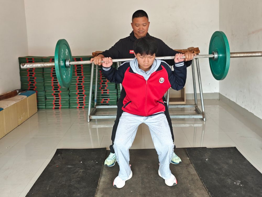 为了补上专业短板,他白天上课、带训,晚上看书学理论,还托人找来教学录像反复琢磨,空了就进城跟专业教练请教。没有器材,他就让学生用沙袋或把大塑料瓶装满水练力量。没场地,他就每天清晨带着学生在空旷的公路上跑步练体能。