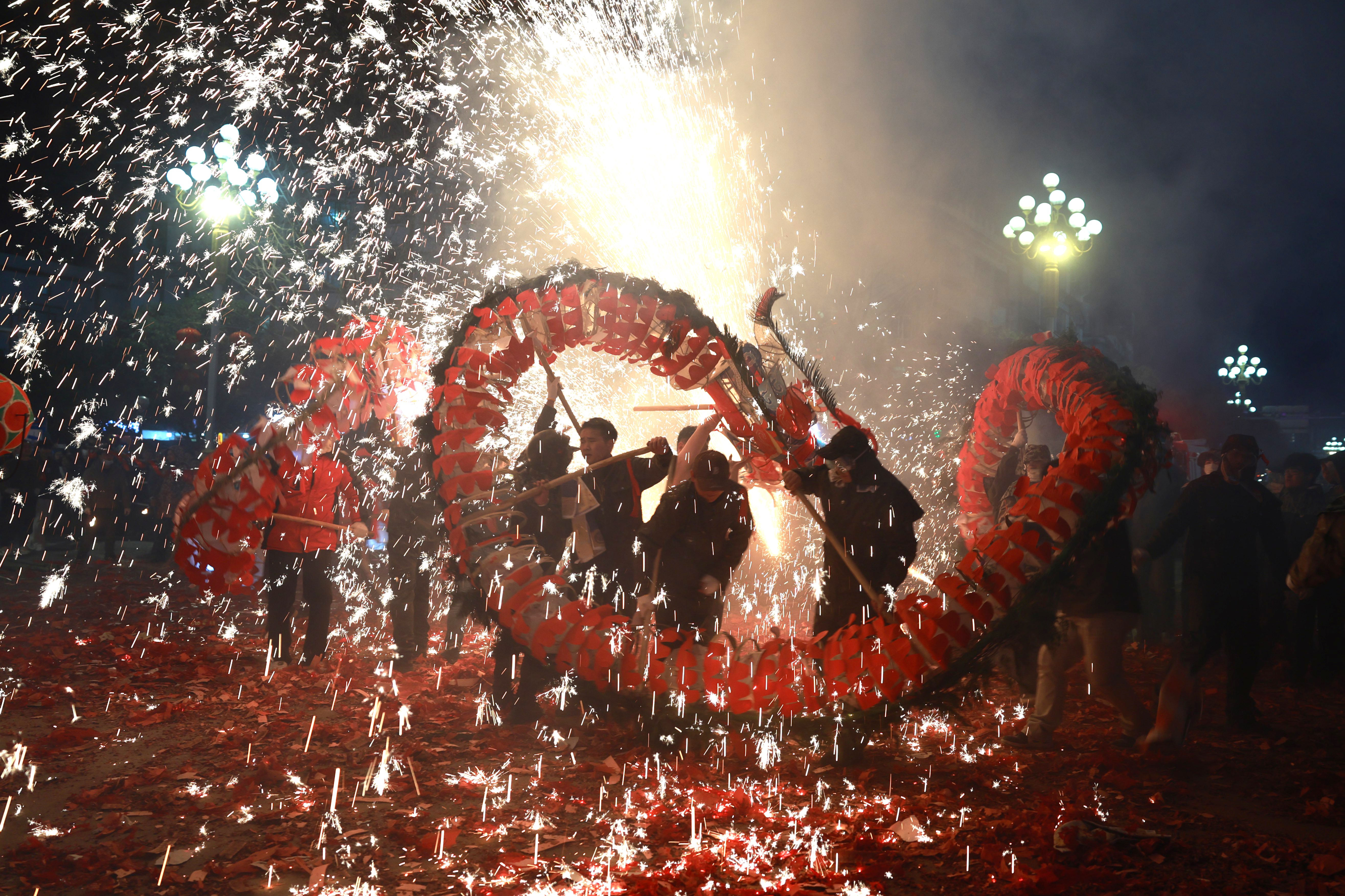 施秉:街头炸龙“热辣滚烫” 马年新春欢乐不歇