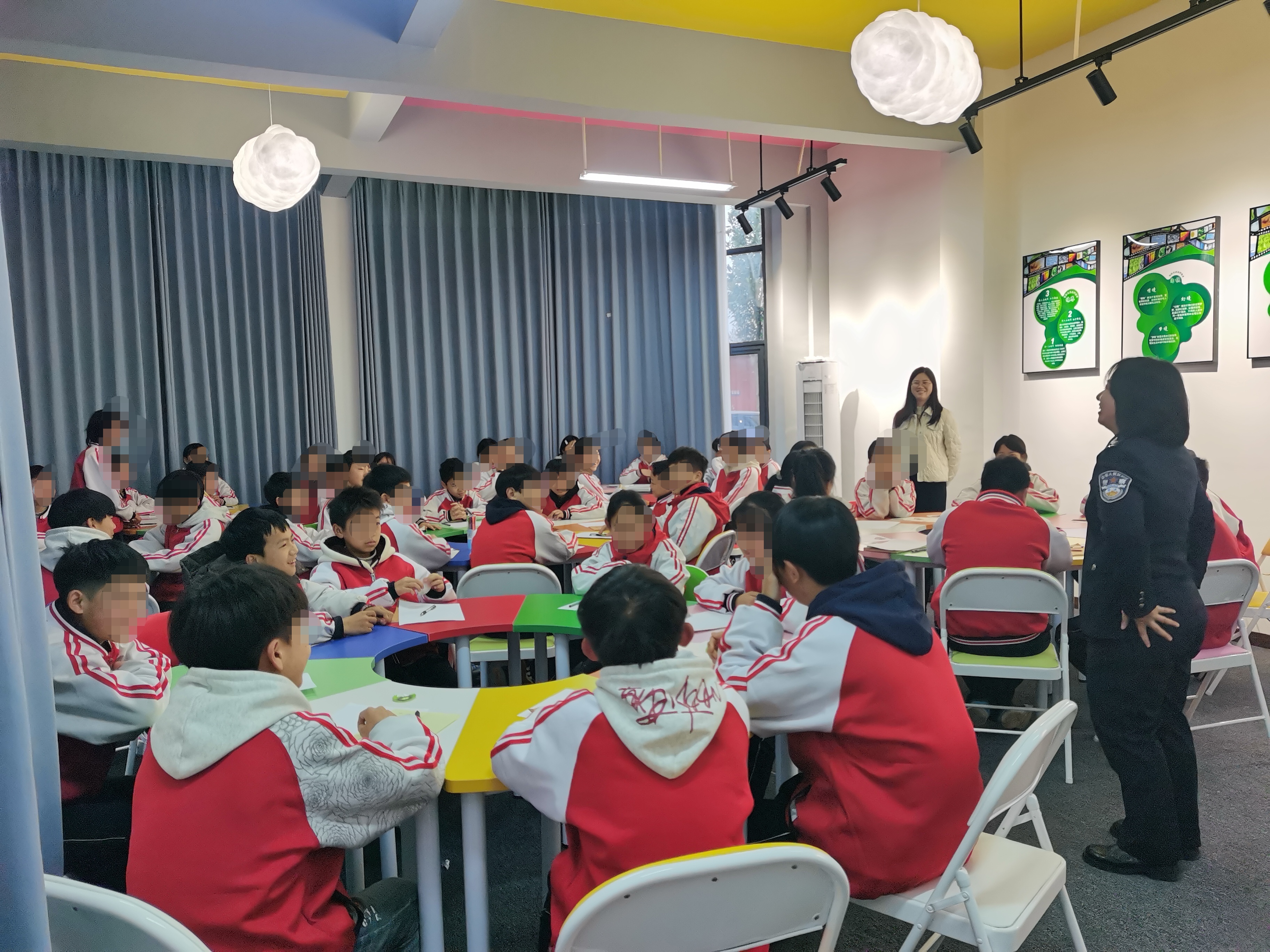 兴趣体验区,书法课让学生感叹“比玩手机有意思”,旨在引导培养健康爱好;“归真”区,省巾帼协会贵定办事处志愿者组织学生以“手机健康共生”为主题开展小组讨论,签下“青春自律承诺书”。