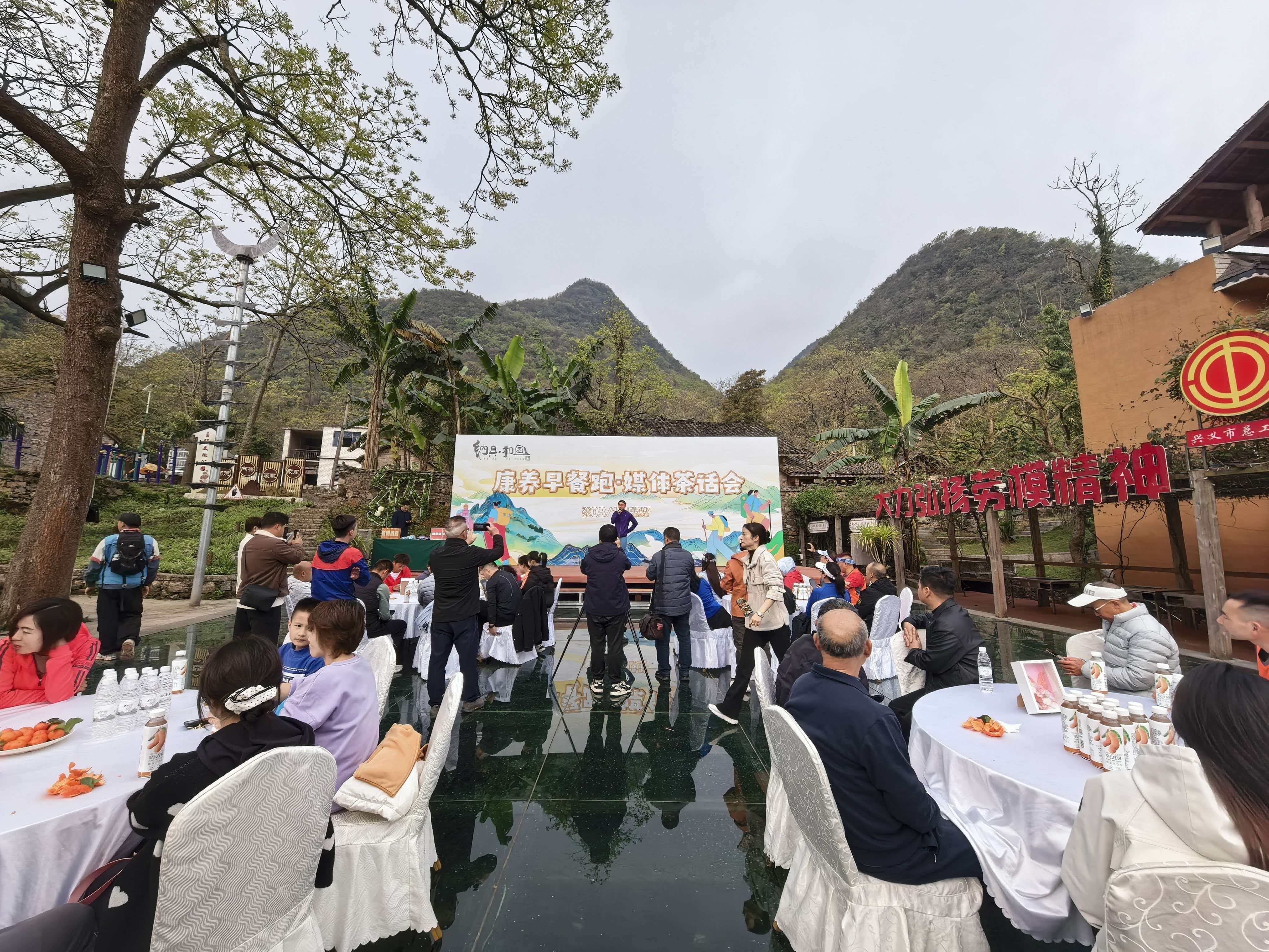 3月14日,“万粉达人”助力2026万峰林马拉松主题网络传播活动暨“万马”早餐跑·媒体茶话会在兴义纳具和园康养小镇举行。来自全国各地的网络达人、新闻媒体从业者、马拉松爱好者近百人齐聚,以文字、图片、短视频等形式,为2026多彩贵州马拉松超级联赛(第一站)暨贵州紫金黄金·万峰林马拉松预热造势、宣传推介。