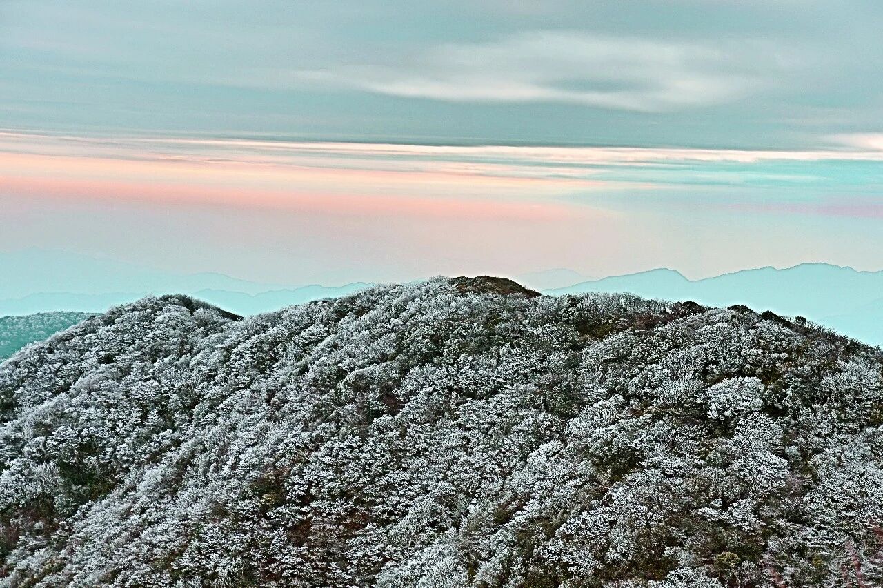 千树梨花何处寻?且看雷公山巅,岁末初雪开