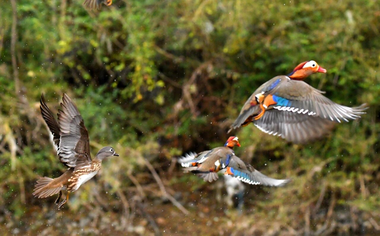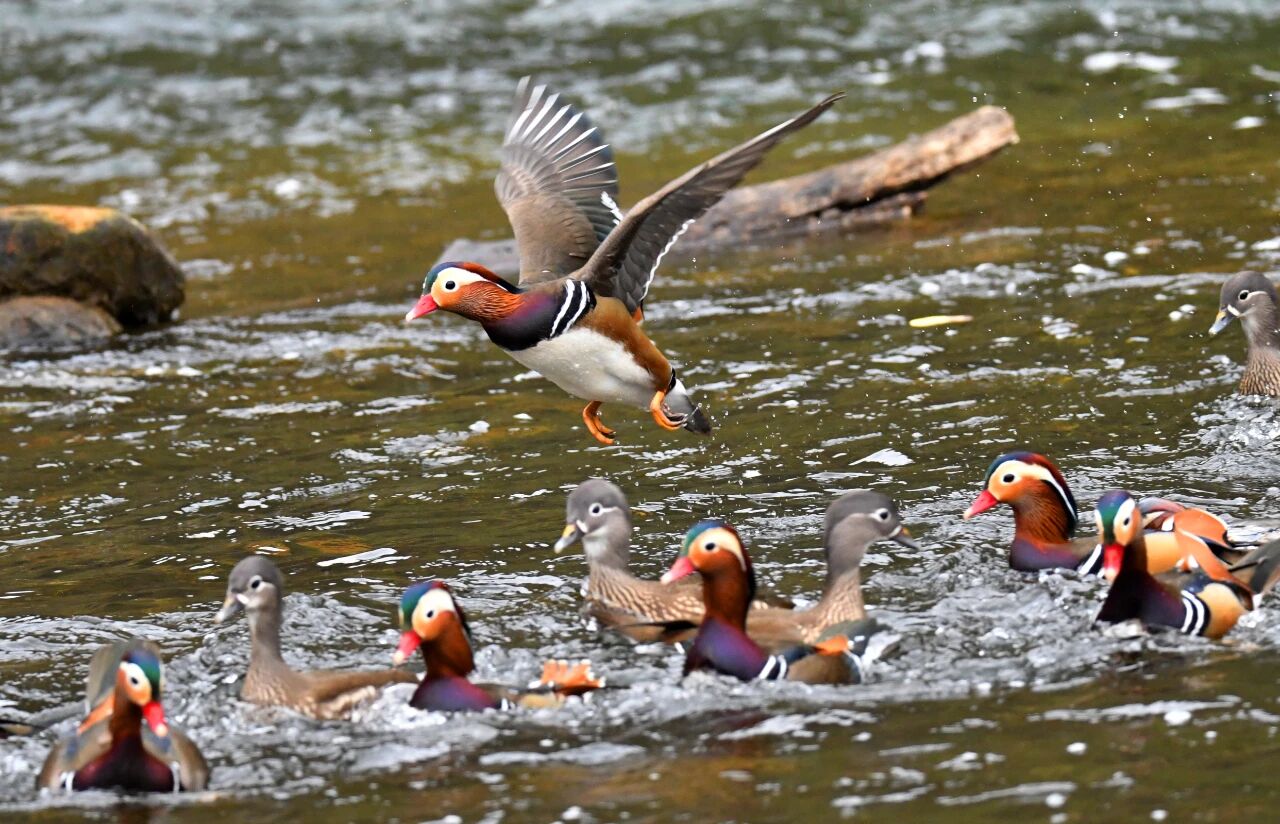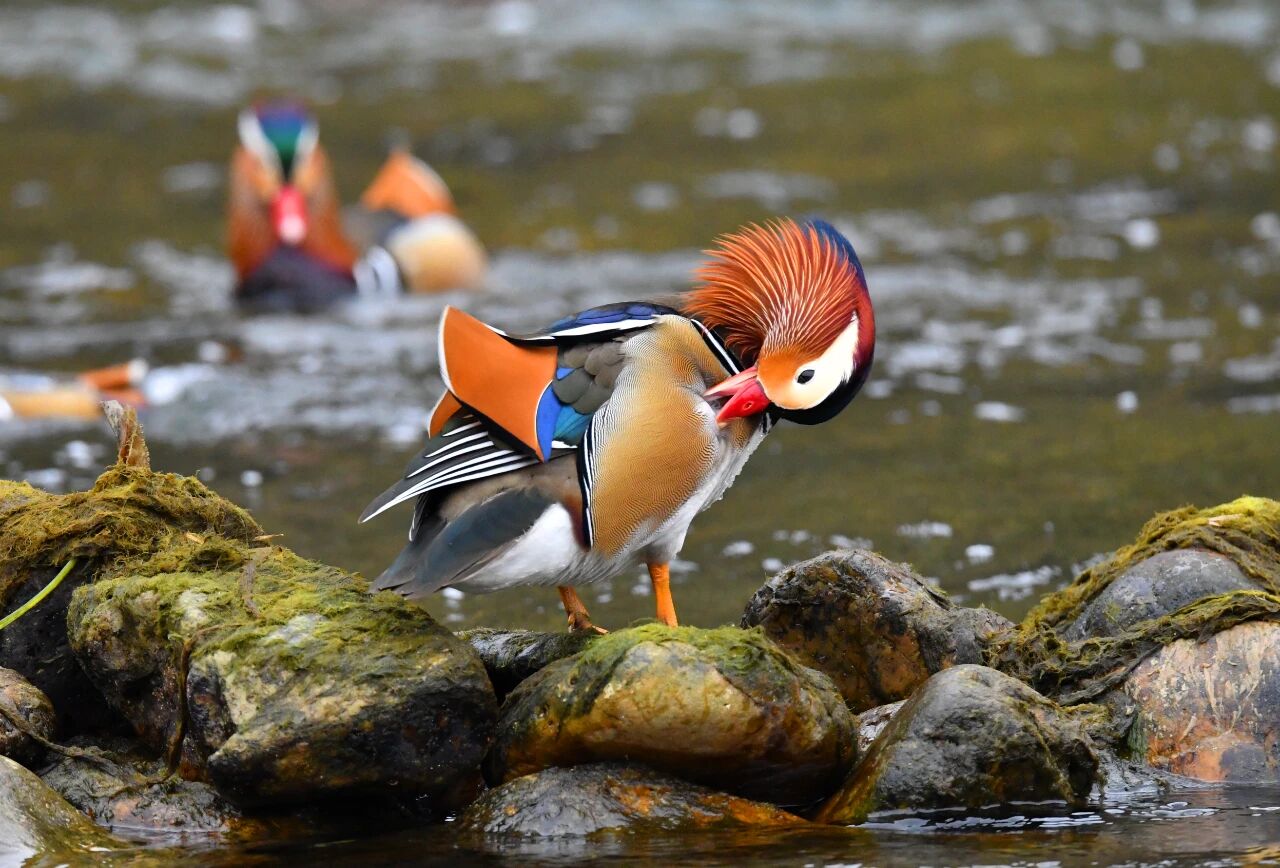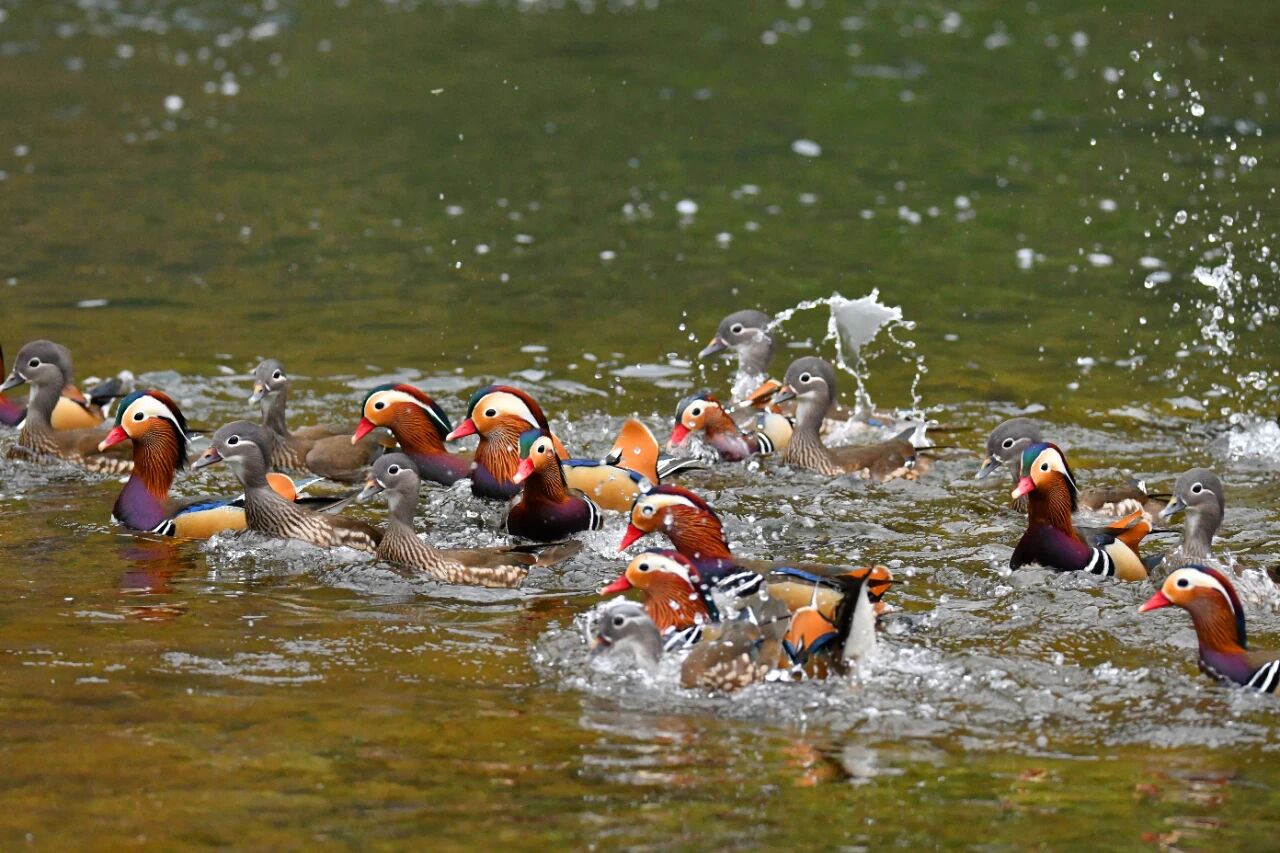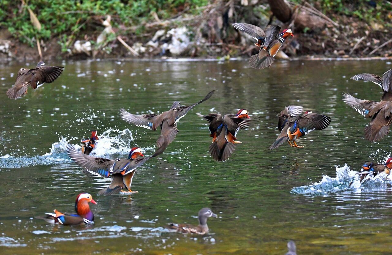 近日,在黔南布依族苗族自治州都匀市墨冲河沿岸,50余只国家二级保护动物野生鸳鸯成群栖息,吸引不少市民和摄影爱好者驻足记录。