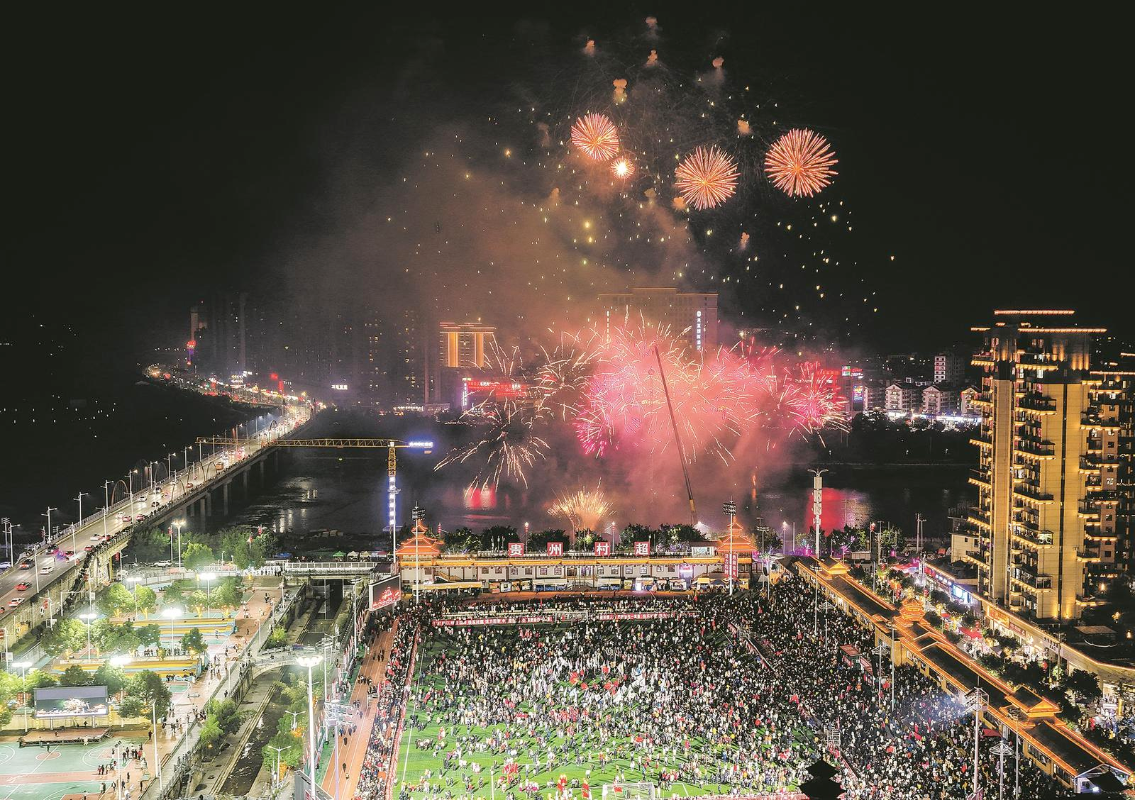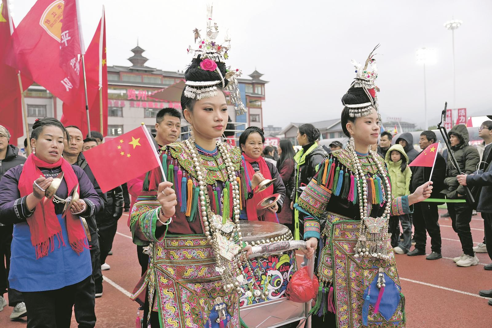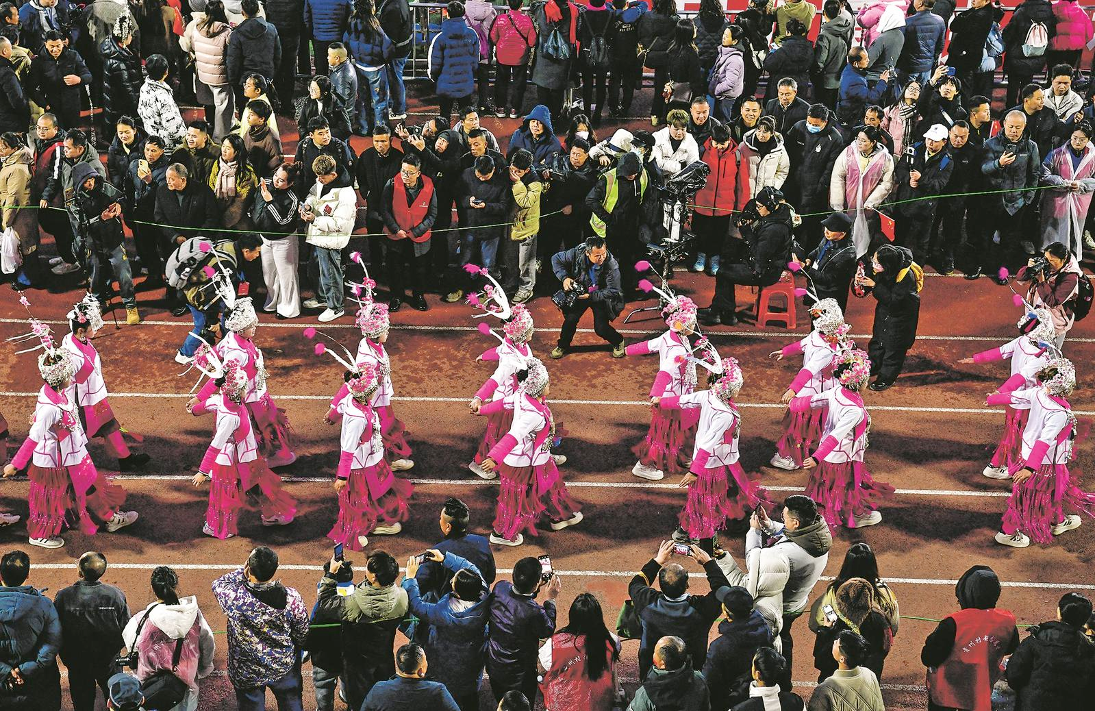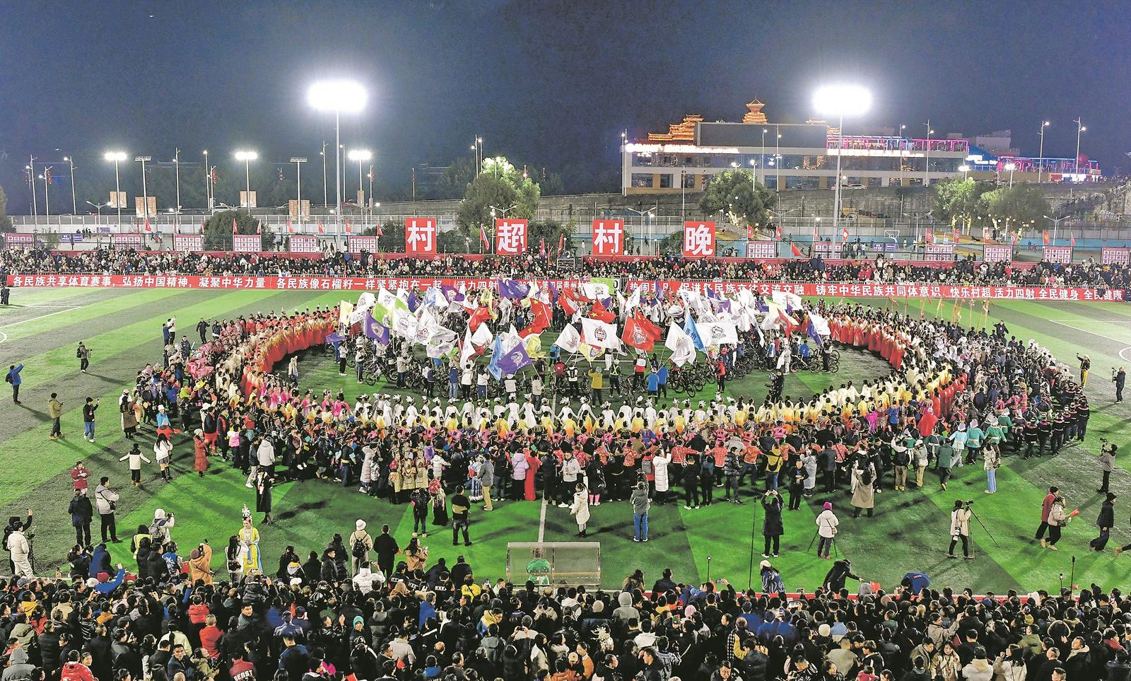 岁首乍寒,冷风吹不散贵州大地的炽热。黔东南苗族侗族自治州榕江县“村超”球场迎来上万观众,在国歌声与欢呼声中,137支足球队整装待发,昂首入场,拉开了第四届贵州“村超”联赛开幕式暨“村超村晚”活动的序幕。夜色渐浓,“村超村晚”点燃激情,从《榜样的力量》到《侗歌声声唱给党》,歌声、朗诵与无人机的绚烂光影交织,各民族盛装载歌载舞,烟花绽放在榕江县的夜空——这是草根足球的盛宴,更是乡土情怀的共鸣。