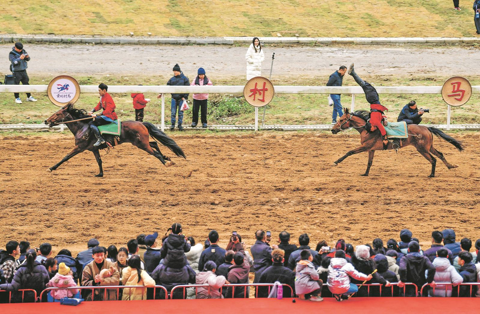 新年伊始,岁序更新。2026年“贵州村马”全国赛马邀请赛在黔南布依族苗族自治州三都水族自治县举行,来自全国多支赛马代表队参与角逐,吸引众多游客与当地群众参与。 除开竞技本身,本届“贵州村马”还聚焦乡村文化,赛事同步开展马术竞技、水族芦笙演奏、服饰展示等丰富多彩的民俗活动,不仅丰富了当地各族群众的精神文化生活,五湖四海的游客也通过互动体验加深对民族文化的理解。