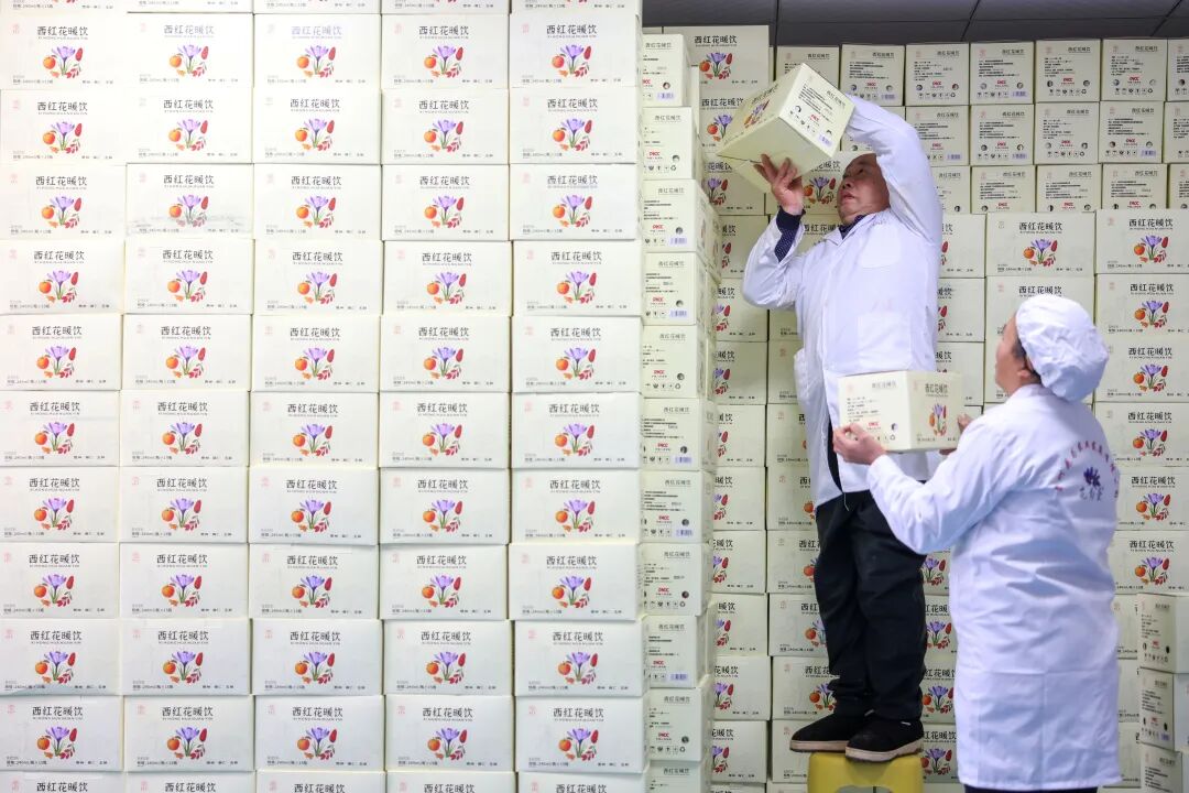 1月11日,贵州省铜仁市玉屏侗族自治县一家西红花生产企业里一派繁忙。工人正在搬运、堆放、抽检环节忙碌,以优质产品供应市场。