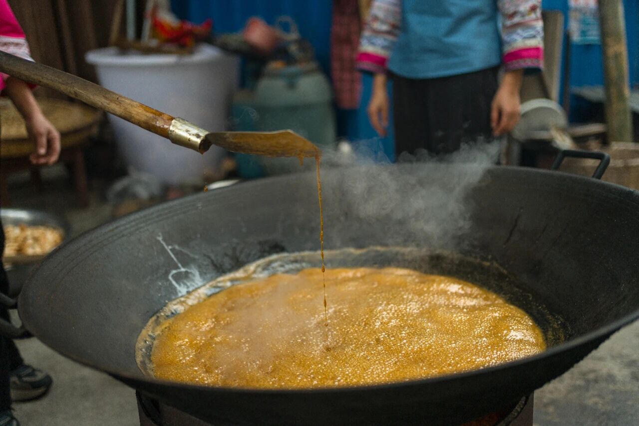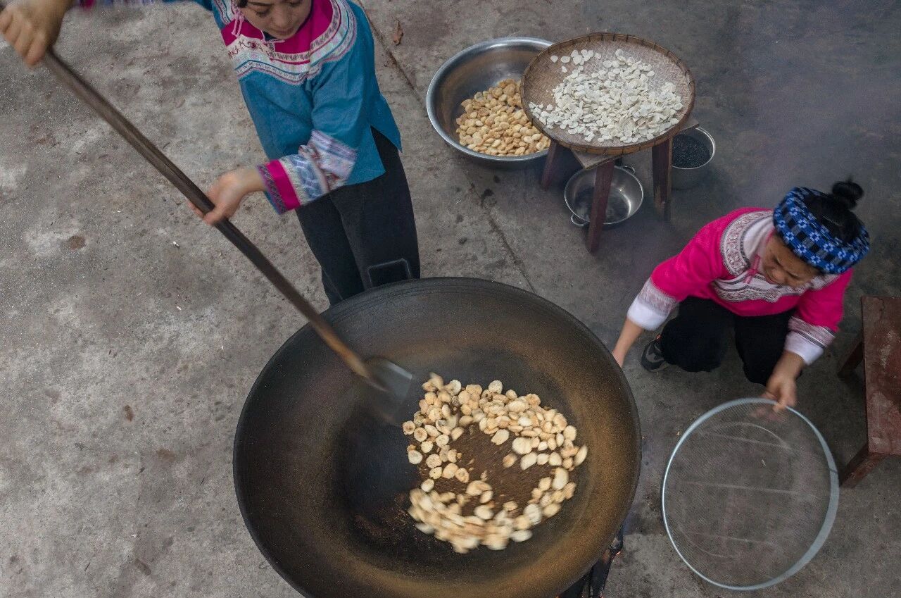 新春将至,贵州省黔西南布依族苗族自治州望谟县蔗香镇蔗香村里,村民们正循着古法制作布依族传统名小吃——红糖萢果,村里弥漫着浓浓年味。