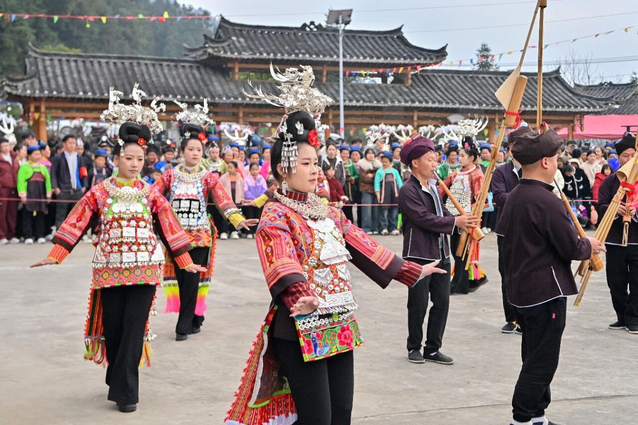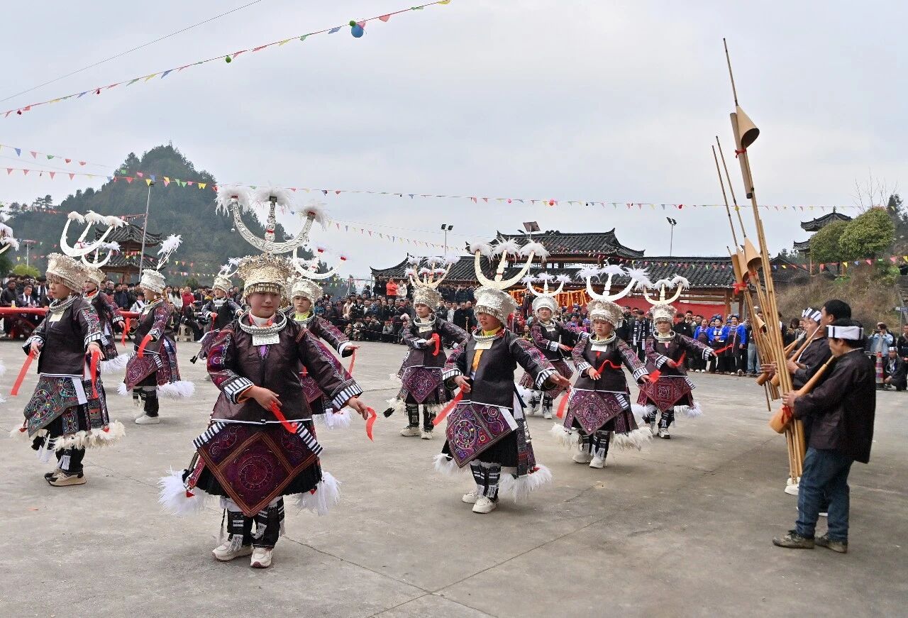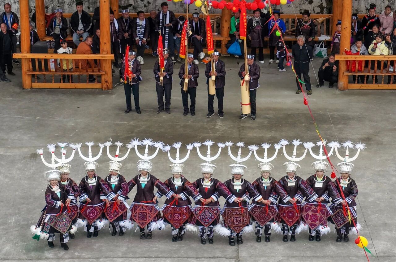 2月21日,黔东南苗族侗族自治州丹寨县雅灰乡雅灰村举行芦笙舞交流比赛庆新春活动,吸引周边村寨200余名群众参加。他们身着百鸟衣或锦鸡舞盛装,交流传统芦笙舞技艺,于裙摆翩飞间,共同欢庆新春佳节,传承和弘扬特色民族文化。