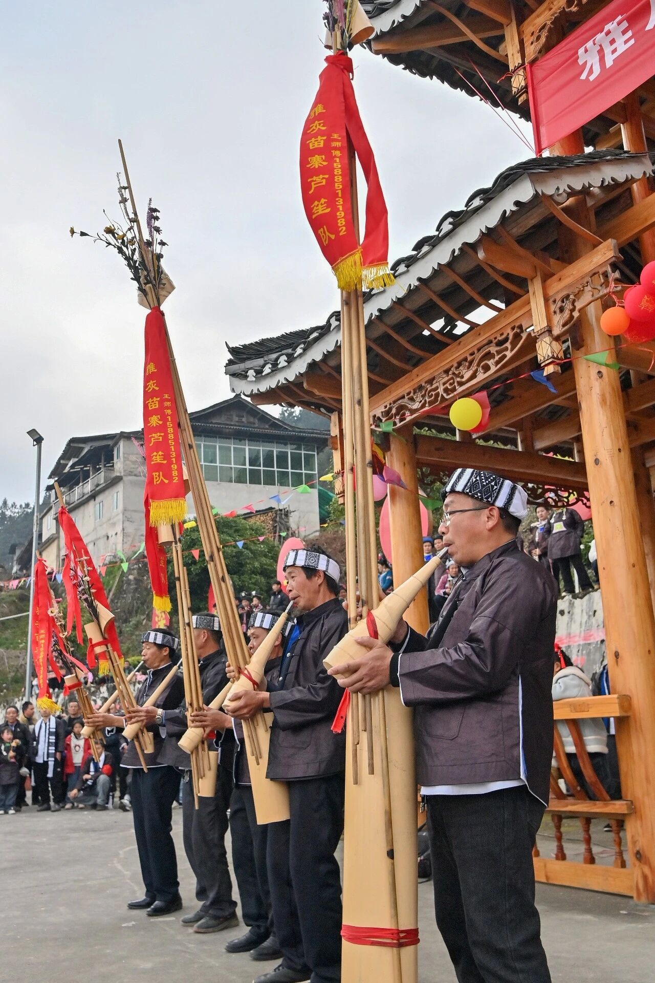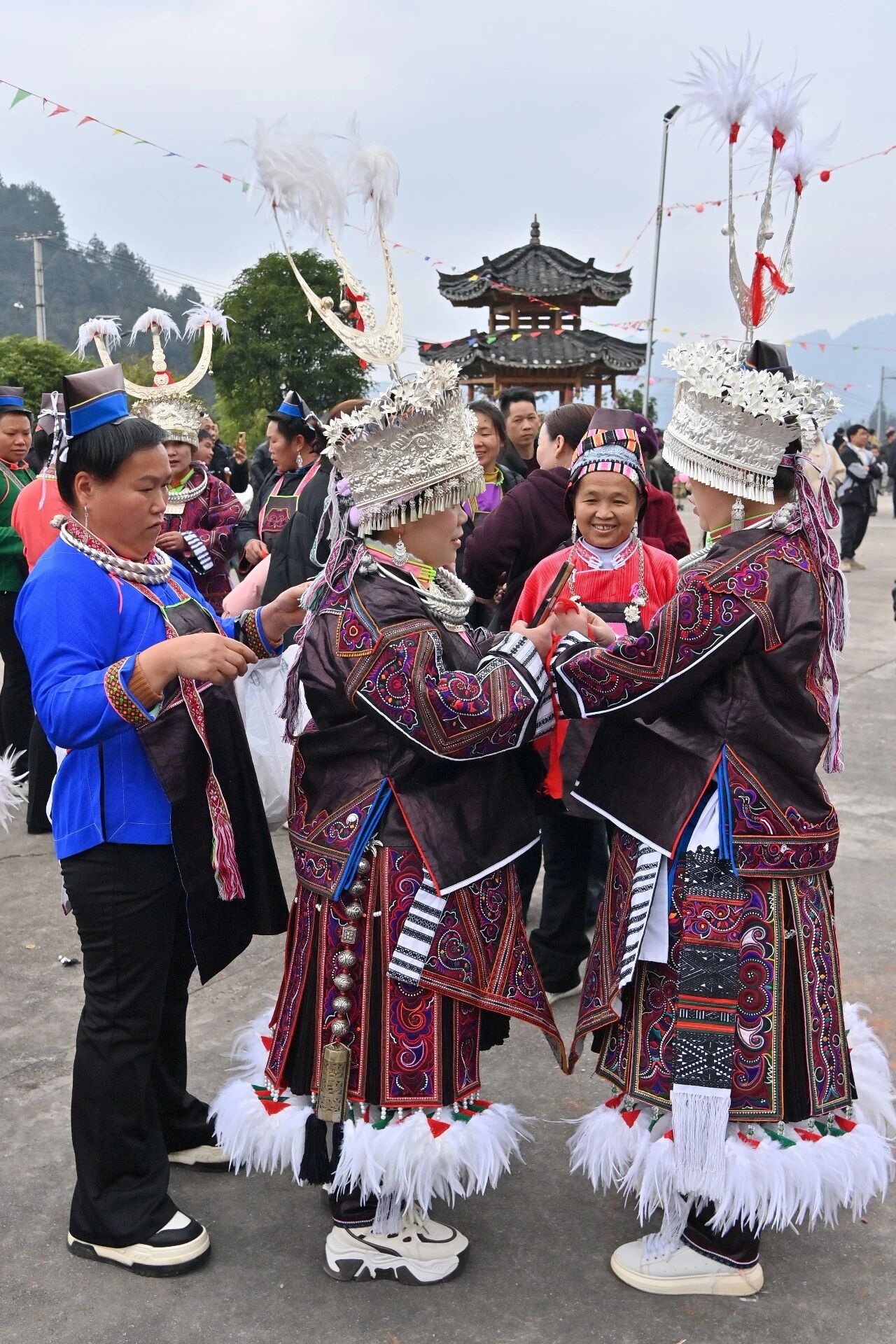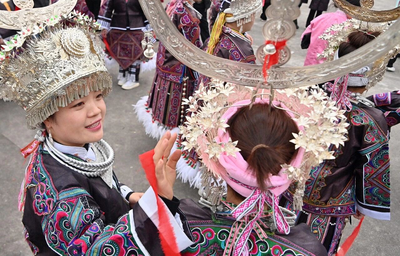 2月21日,黔东南苗族侗族自治州丹寨县雅灰乡雅灰村举行芦笙舞交流比赛庆新春活动,吸引周边村寨200余名群众参加。他们身着百鸟衣或锦鸡舞盛装,交流传统芦笙舞技艺,于裙摆翩飞间,共同欢庆新春佳节,传承和弘扬特色民族文化。
