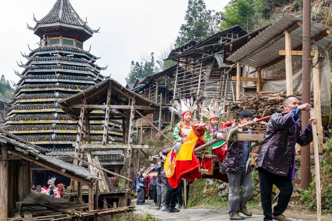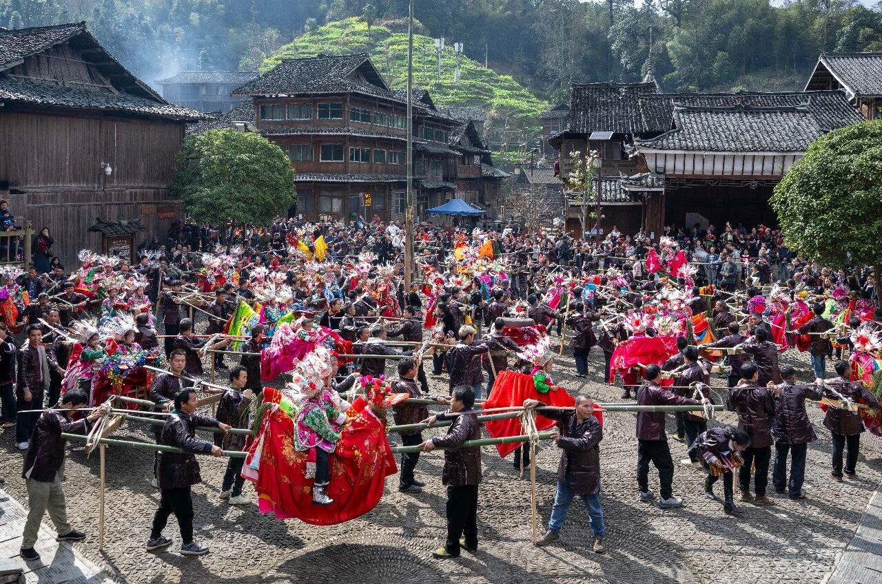 2月23日(农历正月初七),贵州省黔东南苗族侗族自治州黎平县双江镇黄岗侗寨迎来了两年一度的“抬官人”民俗活动。村民以竹为骨、以草为衣,精心扎起一顶顶别致的“马轿”。轿上端坐着两名稚气可爱的孩童,扮作小小“官人”,由四位轿夫稳稳抬起,随着悠扬的芦笙与欢声笑语,缓步巡游于寨巷之间。队伍所至,祈愿随风而播——愿这丙午马年,村村寨寨风调雨顺,家家户户幸福安康。