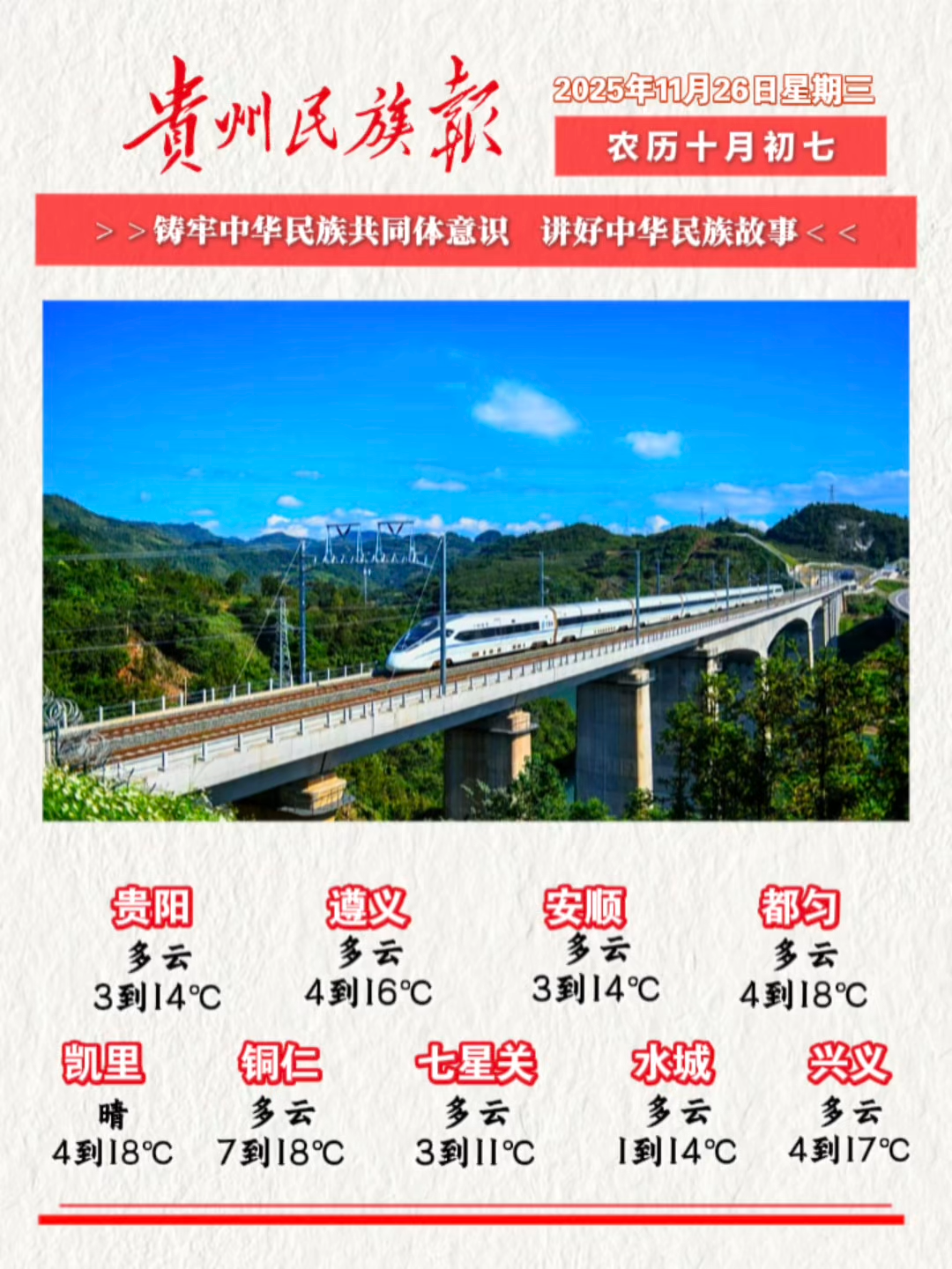 贵州民族报 早报早知道│早上好,今天是11月26日,欢迎收看贵州民族报新闻速读~