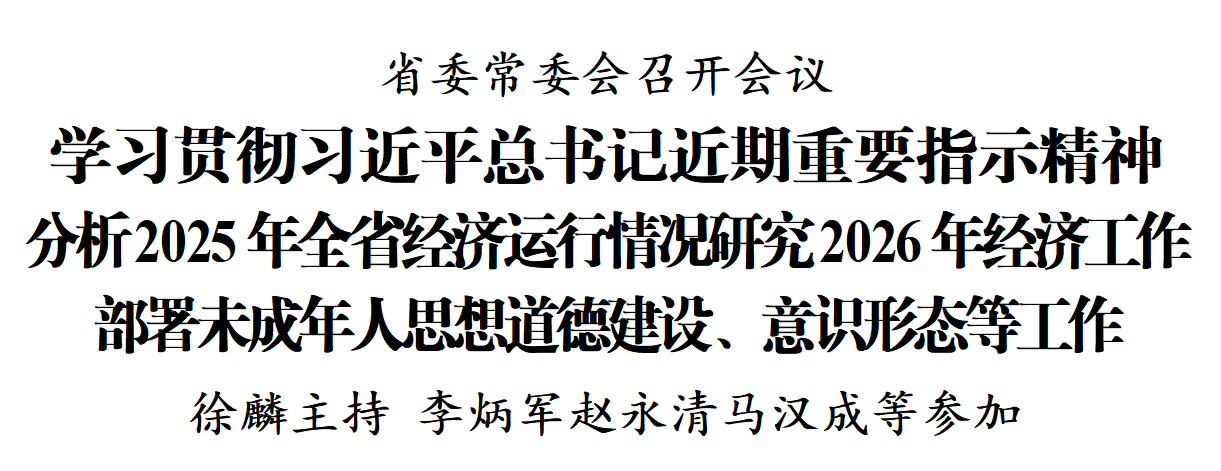 12月22日,省委常委会召开会议,学习贯彻习近平总书记近期重要指示精神,分析2025年全省经济运行情况、研究2026年经济工作,学习贯彻未成年人思想道德建设工作座谈会精神,听取全省意识形态工作情况汇报,部署相关工作。