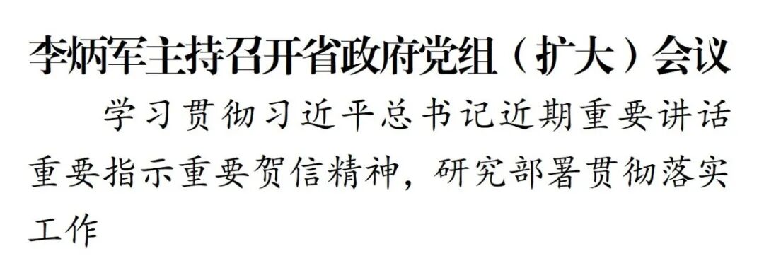1月13日,省长、省政府党组书记李炳军主持召开省政府党组(扩大)会议,学习贯彻习近平总书记近期重要讲话重要指示重要贺信精神,研究部署贯彻落实工作。省政府党组成员、副省长参加。