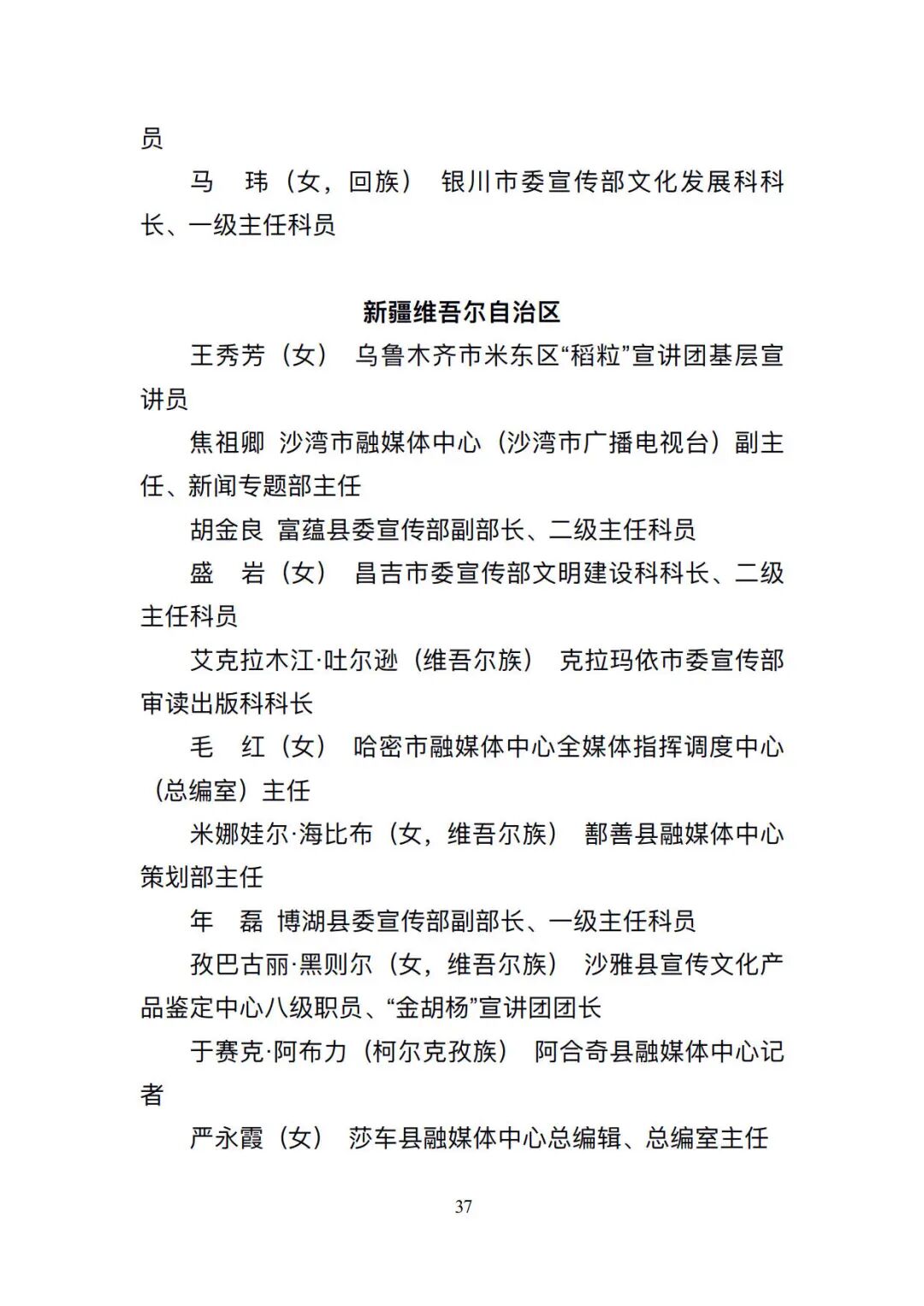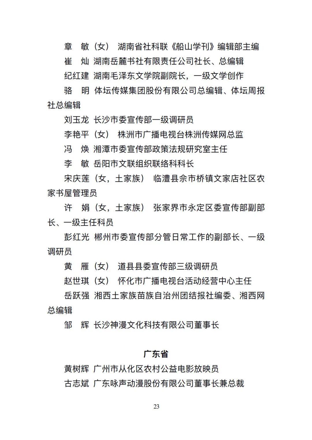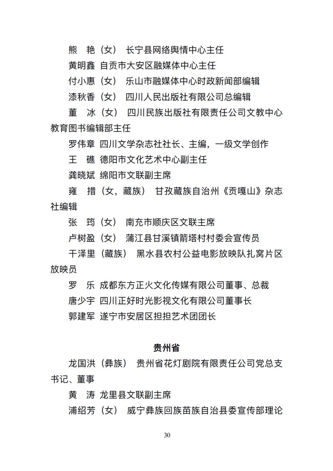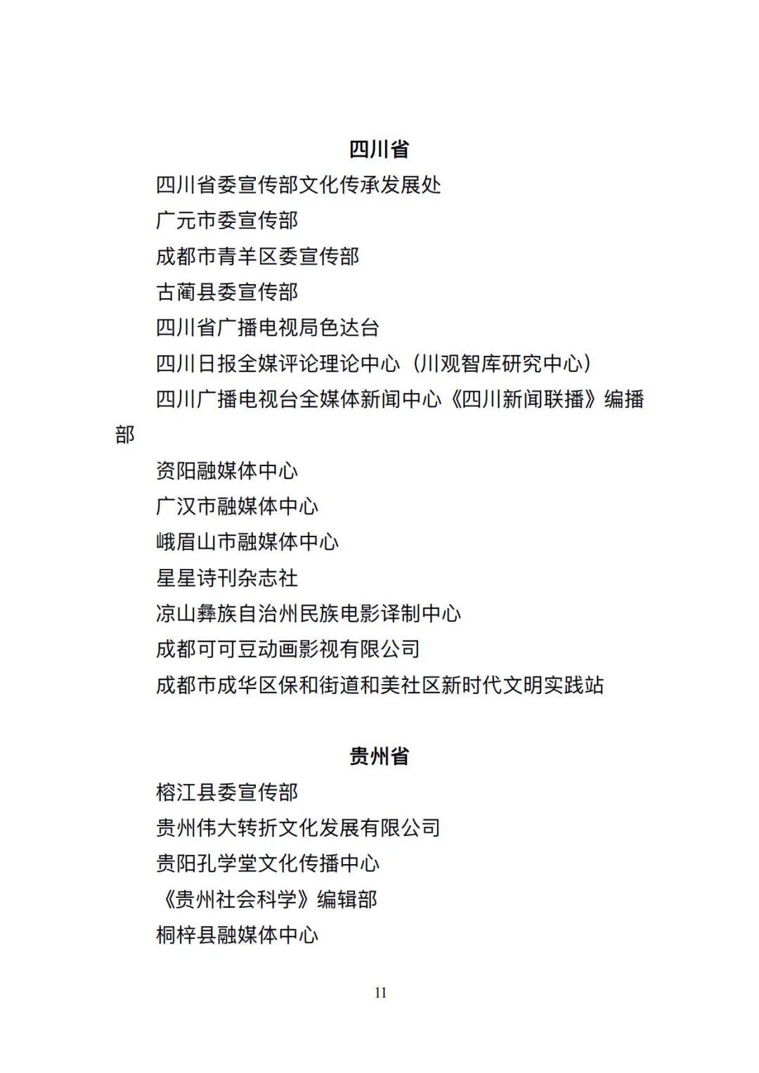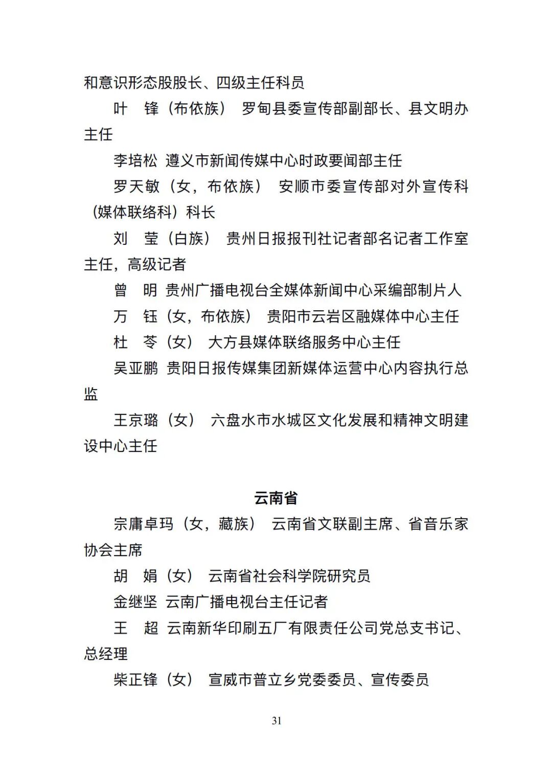 根据公示,全国共291个先进集体、682名先进个人入选。其中,贵州共5个先进集体、12名先进个人入选。5个先进集体为:榕江县委宣传部、贵州伟大转折文化发展有限公司、贵阳孔学堂文化传播中心、《贵州社会科学》编辑部、桐梓县融媒体中心;12名先进个人为:贵州省花灯剧院有限责任公司党总支书记,董事龙国洪(彝族);龙里县文联副主席黄涛;威宁彝族回族苗族自治县委宣传部理论和意识形态股股长,四级主任科员浦绍芳(女);罗甸县委宣传部副部长,县文明办主任叶锋(布依族);遵义市新闻传媒中心时政要闻部主任李培松;安顺市委宣传部对外宣传科(媒体联络科)科长罗天敏(女,布依族);贵州日报报刊社记者部名记者工作室主任,高级记者刘莹(白族);贵州广播电视台全媒体新闻中心采编部制片人曾明;贵阳市云岩区融媒体中心主任万钰(女,布依族);大方县媒体联络服务中心主任杜苓(女);贵阳日报传媒集团新媒体运营中心内容执行总监吴亚鹏;六盘水市水城区文化发展和精神文明建设中心主任王京璐(女)。