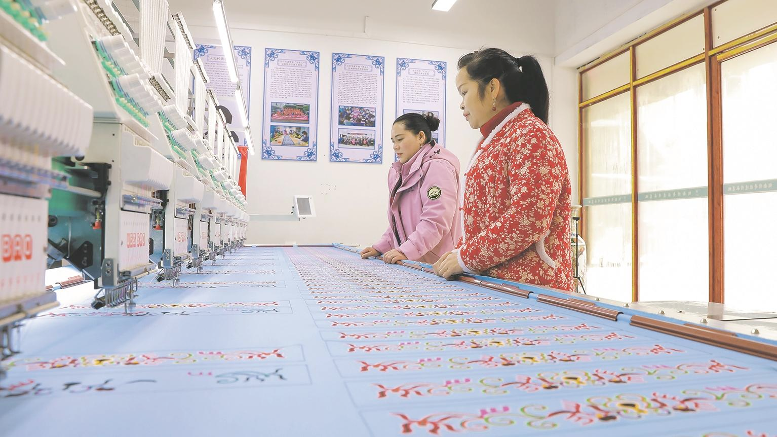 机绣厂的落地不仅提效增产,更创造了新就业机会。截至目前,侗韵传奇非遗传承基地已带动周边村寨百余位妇女实现灵活就业。