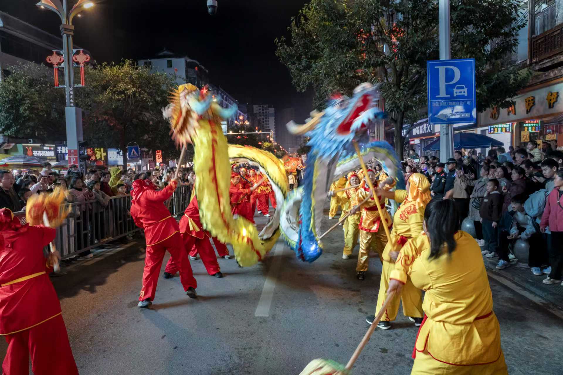 2月22日晚,“玩黎平故事·迎新春福运”2026年春节非遗民俗巡游在黔东南苗族侗族自治州黎平县德凤镇黎平古城举行。九大特色方阵沿古城街巷行进,让市民游客沉浸式感受传统非遗魅力与新春氛围。