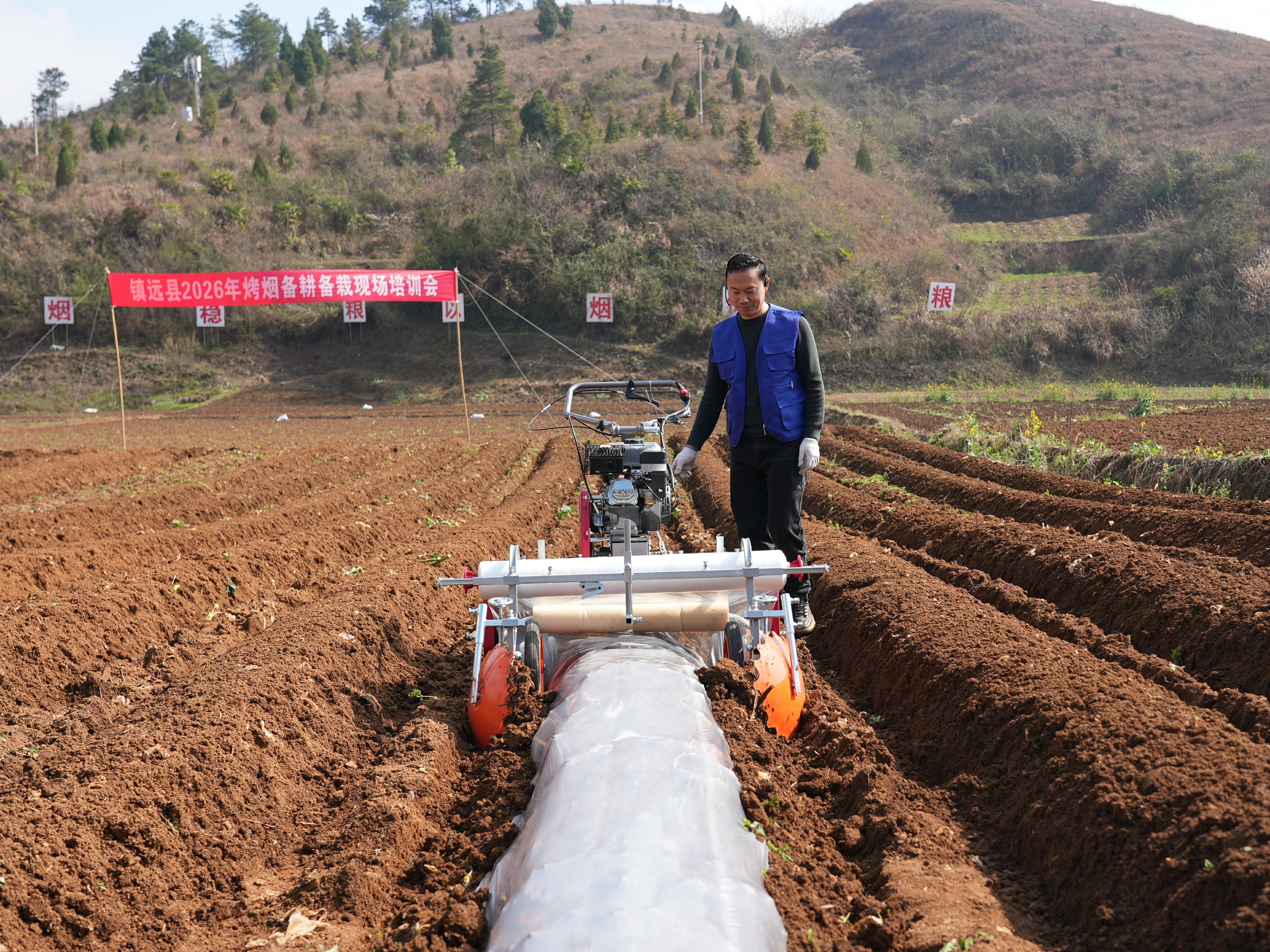 贵州翔磊农业机械有限公司负责人彭德勇介绍,覆膜机、开沟培土机机身小巧灵活,适配山区烤烟种植作业,可大幅减少劳动力投入、降低人工成本。新型农业机械起垄覆膜效率是人工的10倍,能有效助力烟农增产增收。