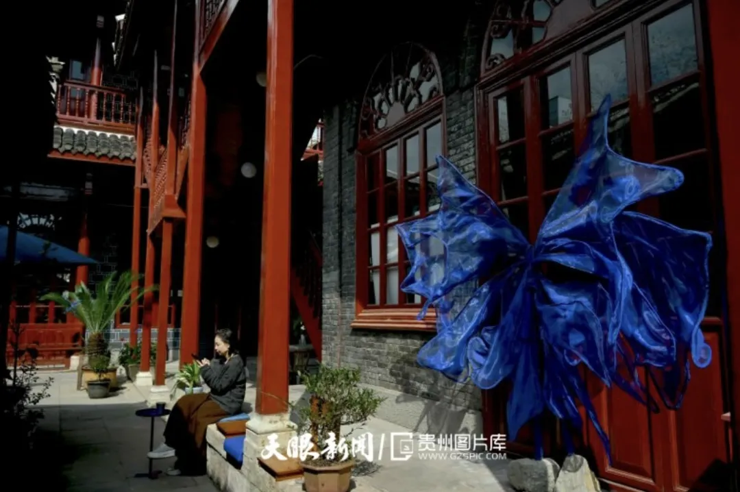 坐落在电台街的大觉精舍内,已开设民族特色工艺品店、咖啡店、非遗手作店、钱币博物馆 贵州日报天眼新闻记者 程洁 摄